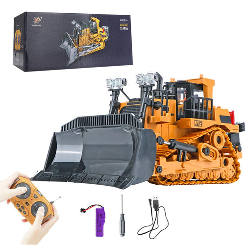 9-Channel Metal RC Bulldozer with Lights and Sound - Remote Control Heavy Equipment Construction Vehicles Dozer Toys