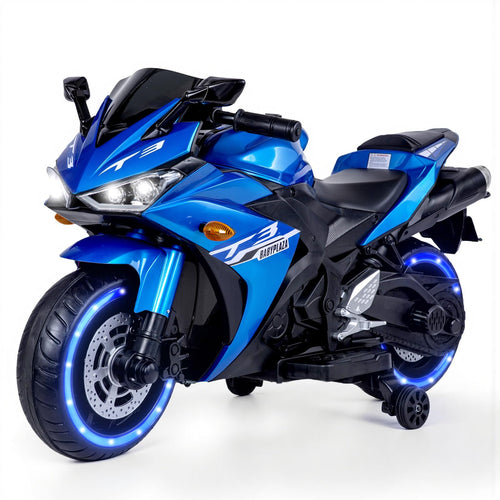 12V Electric Motorcycle, Kids Motorcycle with Training Wheel, 7AH Battery Ride On Motorbike for Kids, 4.2 MPH Max Speed, Blue