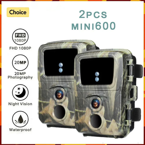 2PCS Mini600 Mini Trail Hunting Camera 20MP 1080P Wildlife Animal Hunter Cameras Night Vision Photo Traps Surveillance Tracking