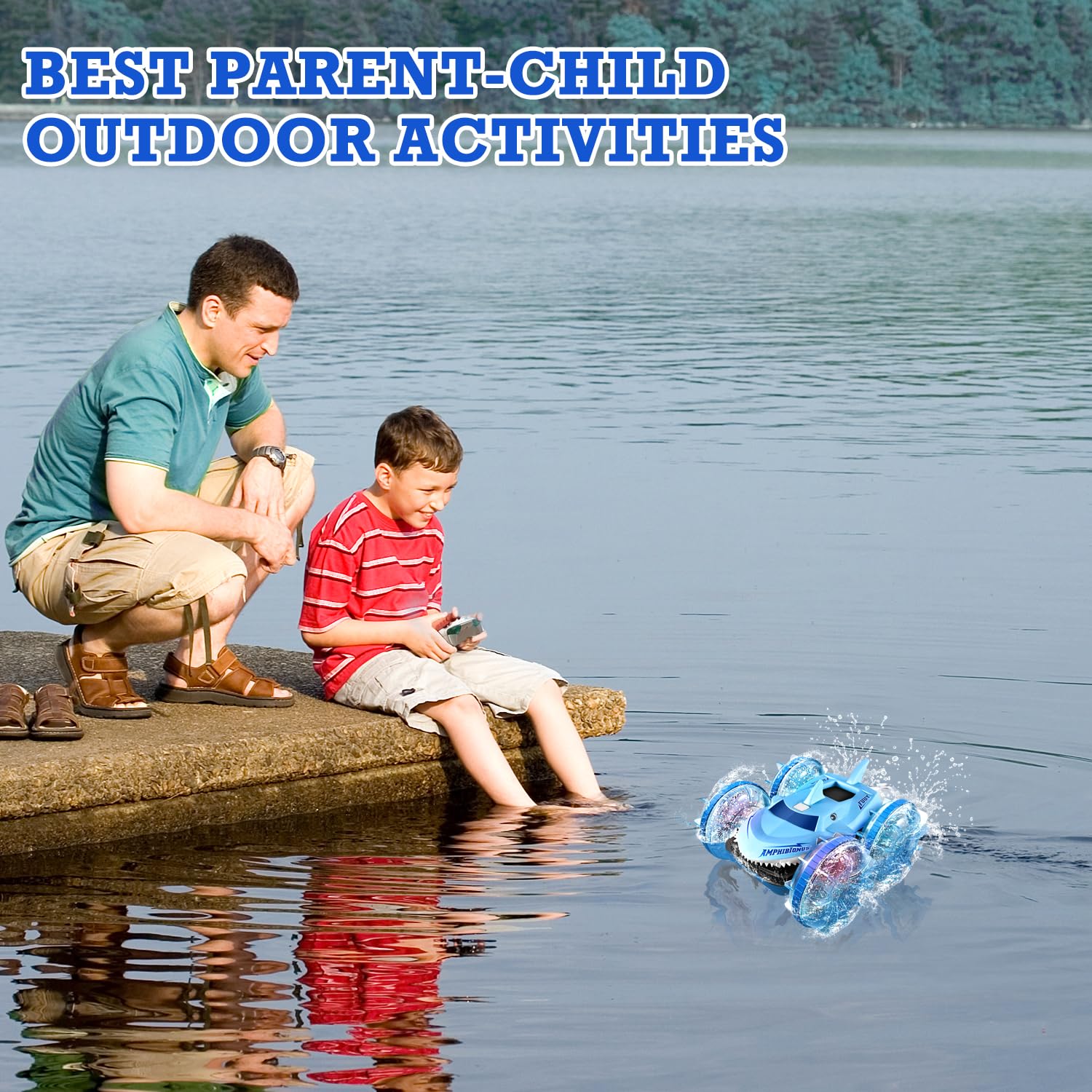 - Outdoor Amphibious RC Cars: Fuuy amphibious remote control car not only driving in the land, but also surf on the water! Smooth race on both land & water front & back flips, 360 degree spins. using a fully sealed design to effectively prevent water from enter the battery compartment, making the waterproof run in any weather, anywhere, anytime