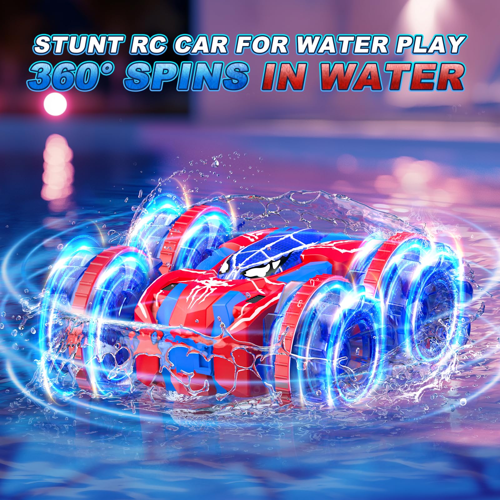 Waterproof Remote Control Car,4WD Amphibious 2.4 GHz RC Car Remote Control Boat,360°Rotation RC Stunt with LED Lights
