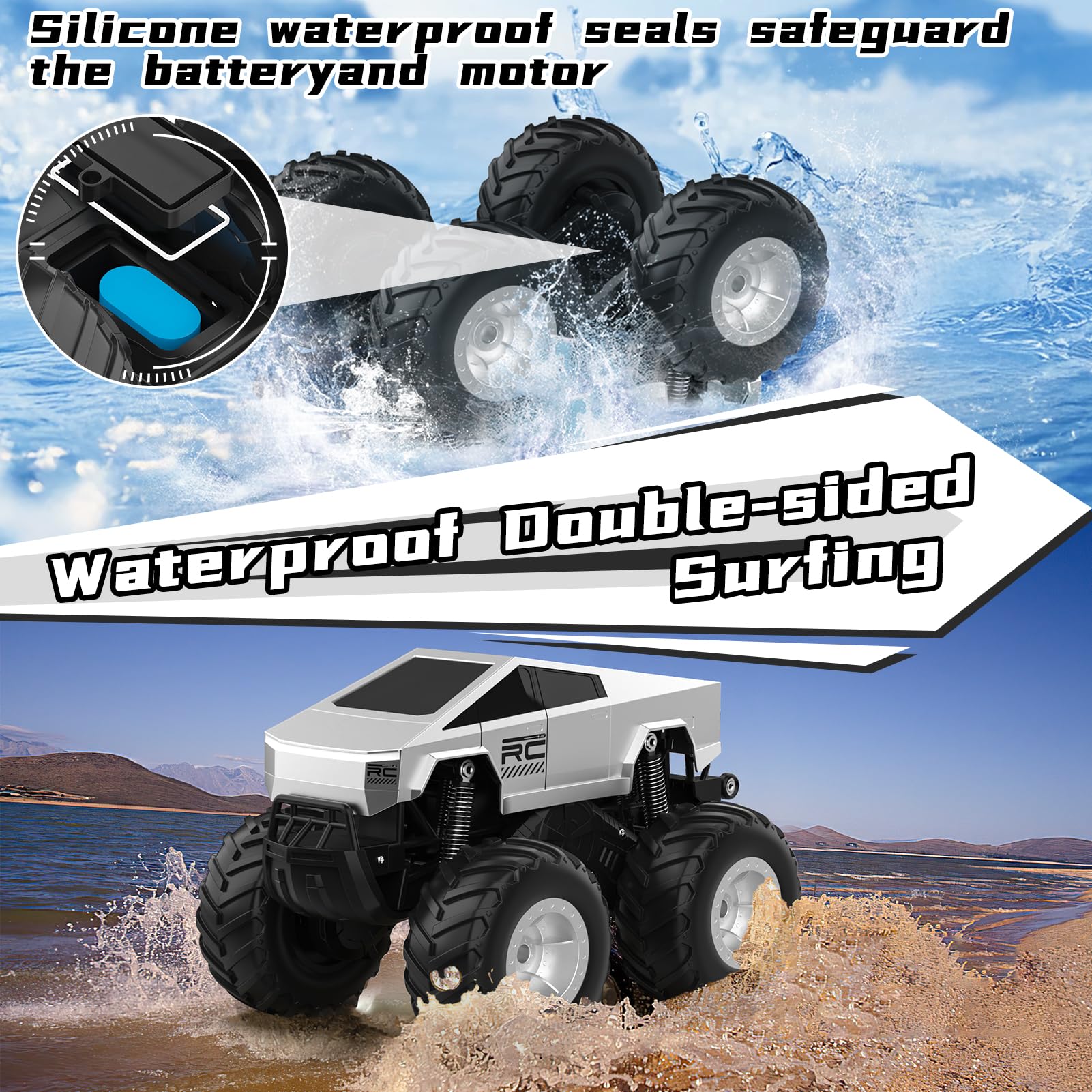 - 【Waterproof All-Terrain RC Truck Remote Control Car】Featuring a sealed design with built-in waterproof electronic components and dual electric motors, this truck is engineered to conquer all terrains, making it a true all-terrain vehicle ready for any adventure. This RC cars ensure flawless performance and precise functionality in every terrain