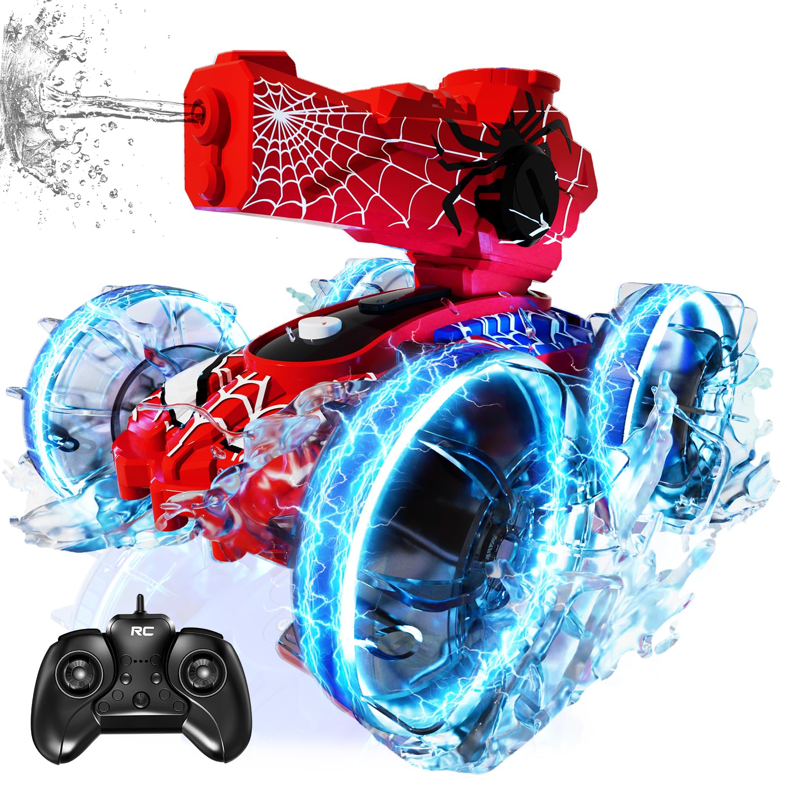 • Spider Amphibious Remote Control Car For Boys: This remote control car is specially designed with a comprehensive waterproof function. It is not only a water racing car, but it also can surf in water and shoot automatically; it is also a land racing car with shooting mode, and it is the king of land. Front & back flips, 360-degree spins on the water and ground. It can easily handle various terrains such as beaches, grasslands, muddy paths, and pools, bringing endless driving pleasure.