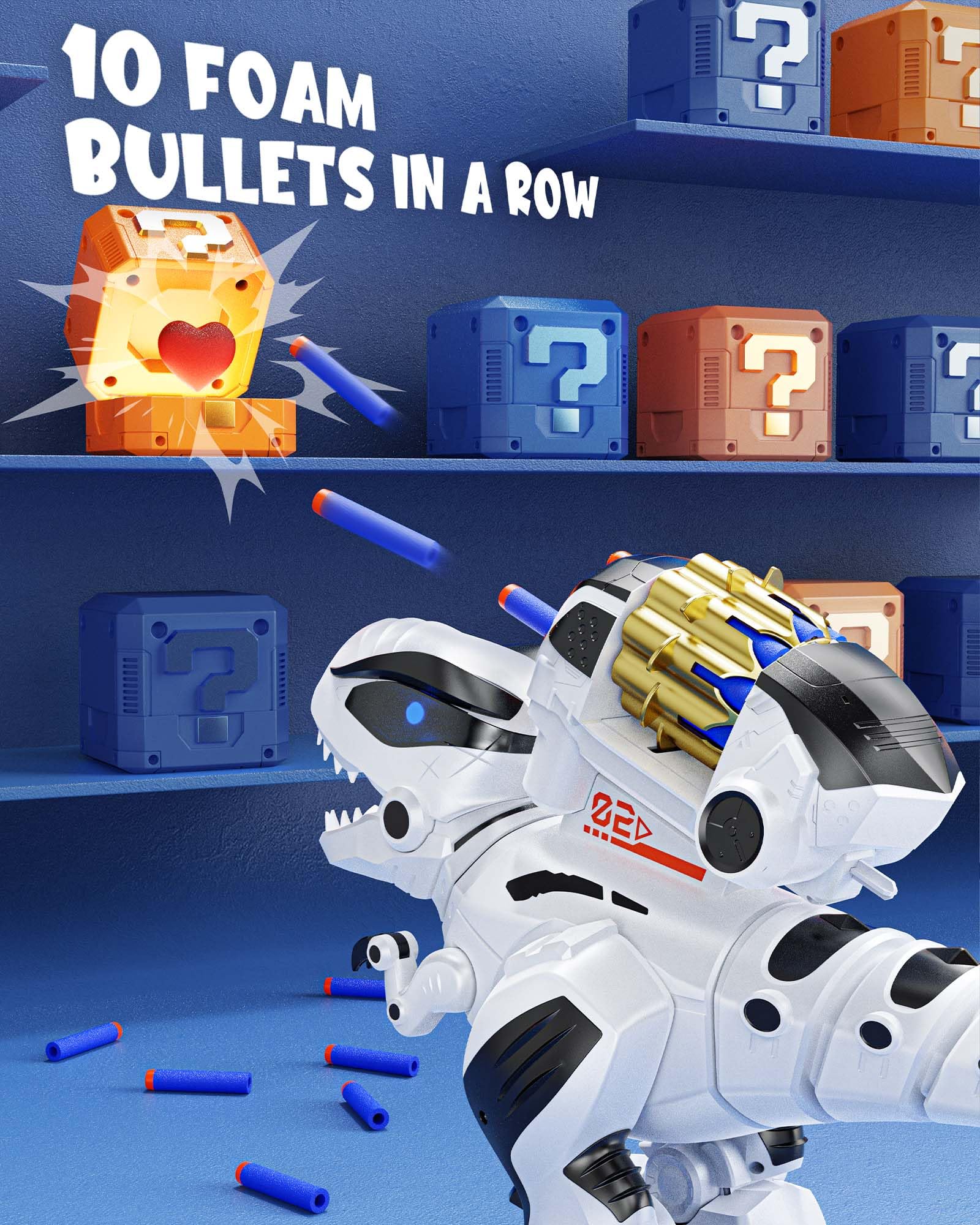 • 【SHOOTING & HUNTING MODE】Watch the T. rex unleash its "hunting" skills by firing up to 10 safe foam darts in a row! Designed for exciting, interactive play, it lets kids enjoy action-packed adventures with a fun, dino-themed twist.