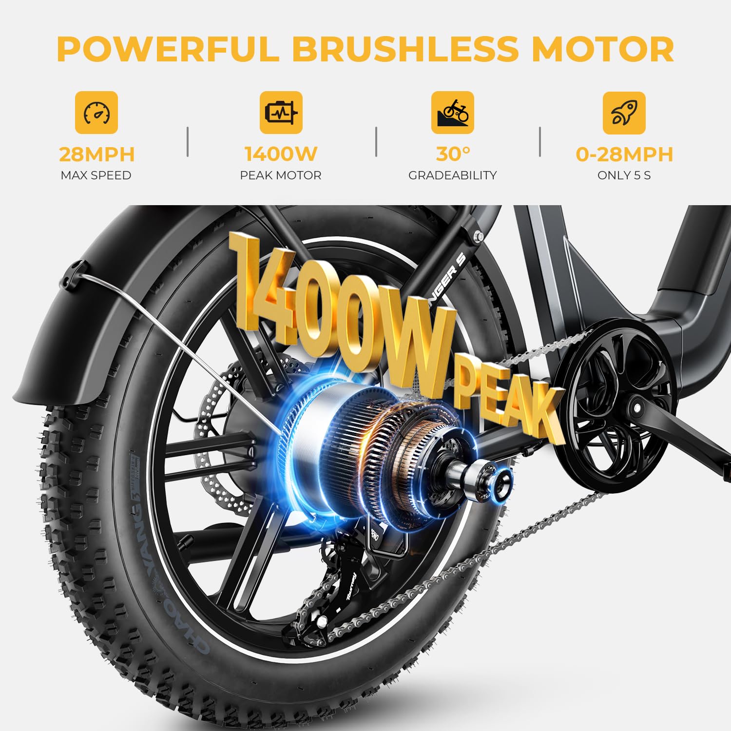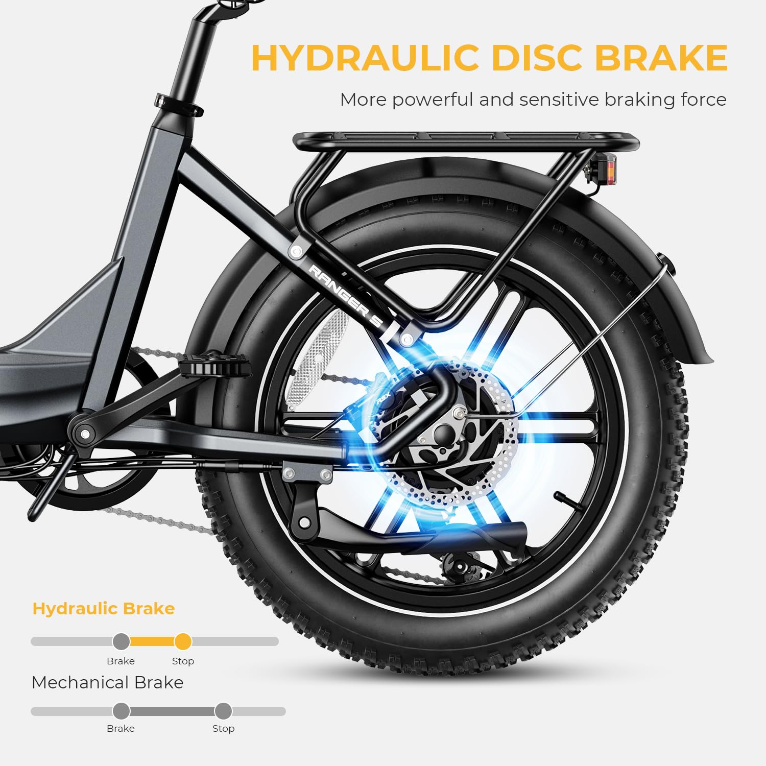 - Stay Visible, Stay Safe: This Ranger S e-bike for adults features smart lights that automatically turn on in low-light conditions, lighting up your journey. Upgraded front and rear turn signals clearly show your intentions, while the bright taillight ensures you're seen at night. The brake light intensifies when you stop, alerting vehicles behind and enhancing safety