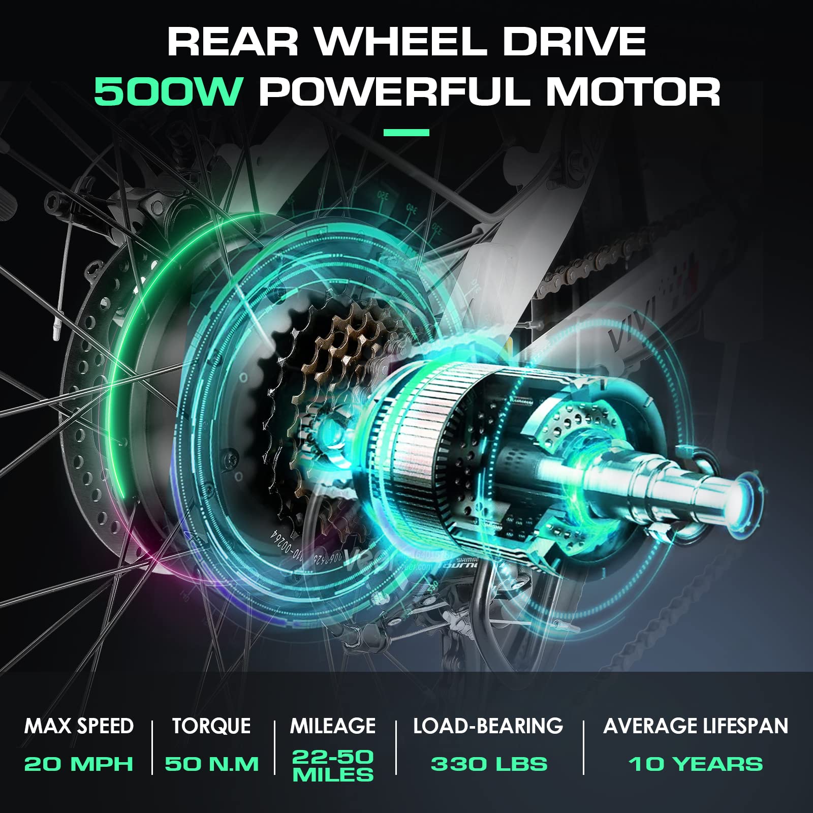 - 【SAFETY】The vivi ebike has a security serial number printed on a hidden place on the front of the bicycle, so please remember to take a photo or save it, the serial number can provide you with some help when the ebike is lost