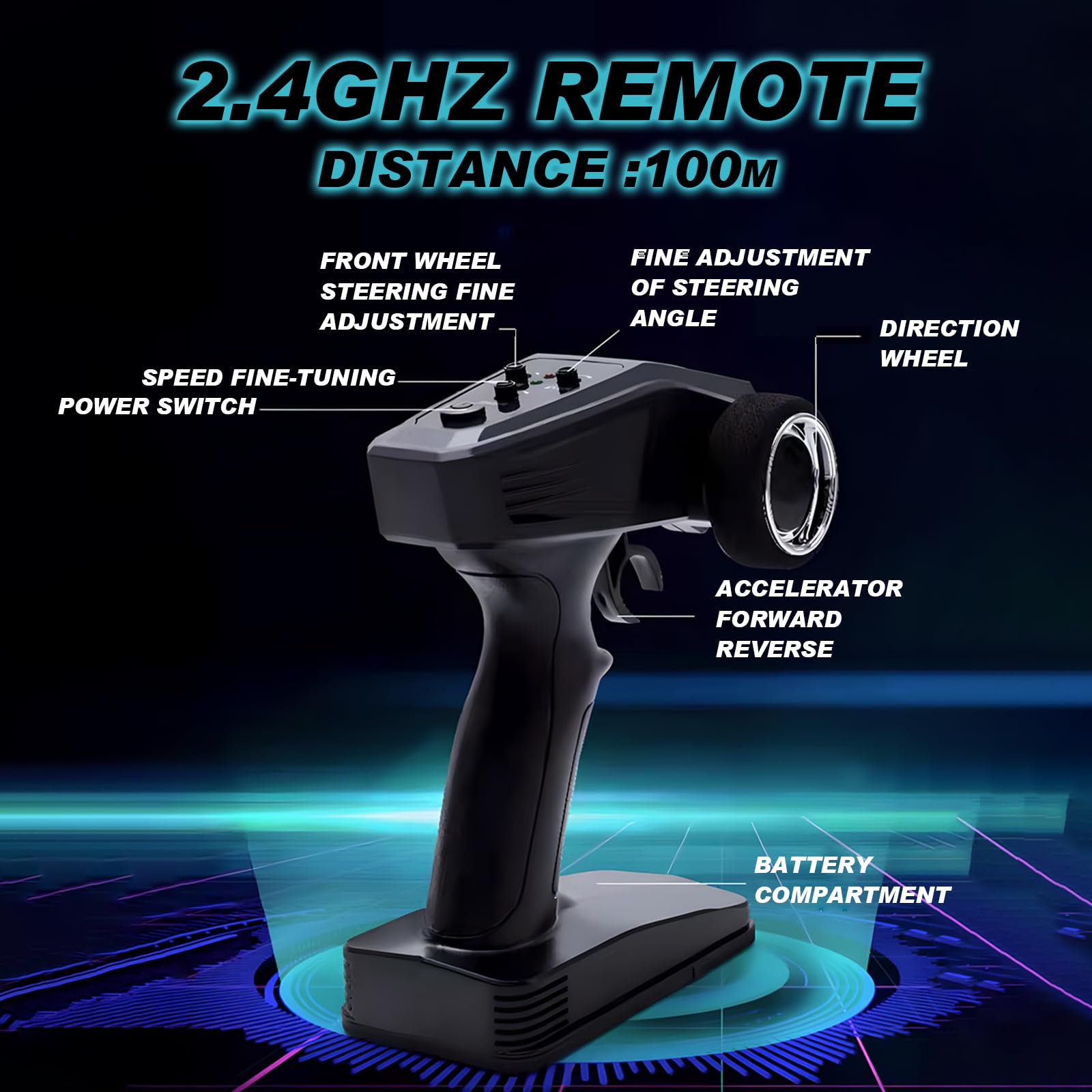 • 【Intelligent Remote Control】The off-road rc car equipped with 2.4GHz full-featured proportional radio control system allows for a stable range of control up to 280 feet. Ergonomically designed handheld for easy maneuverability, the stable signal transmission allows the rc truck to reliably forward, brake and reverse transmission never fails, enjoy reliable, stable and fast speeds in extreme impact. that delivers lightning-fast action, perfect for rallying and drifting.