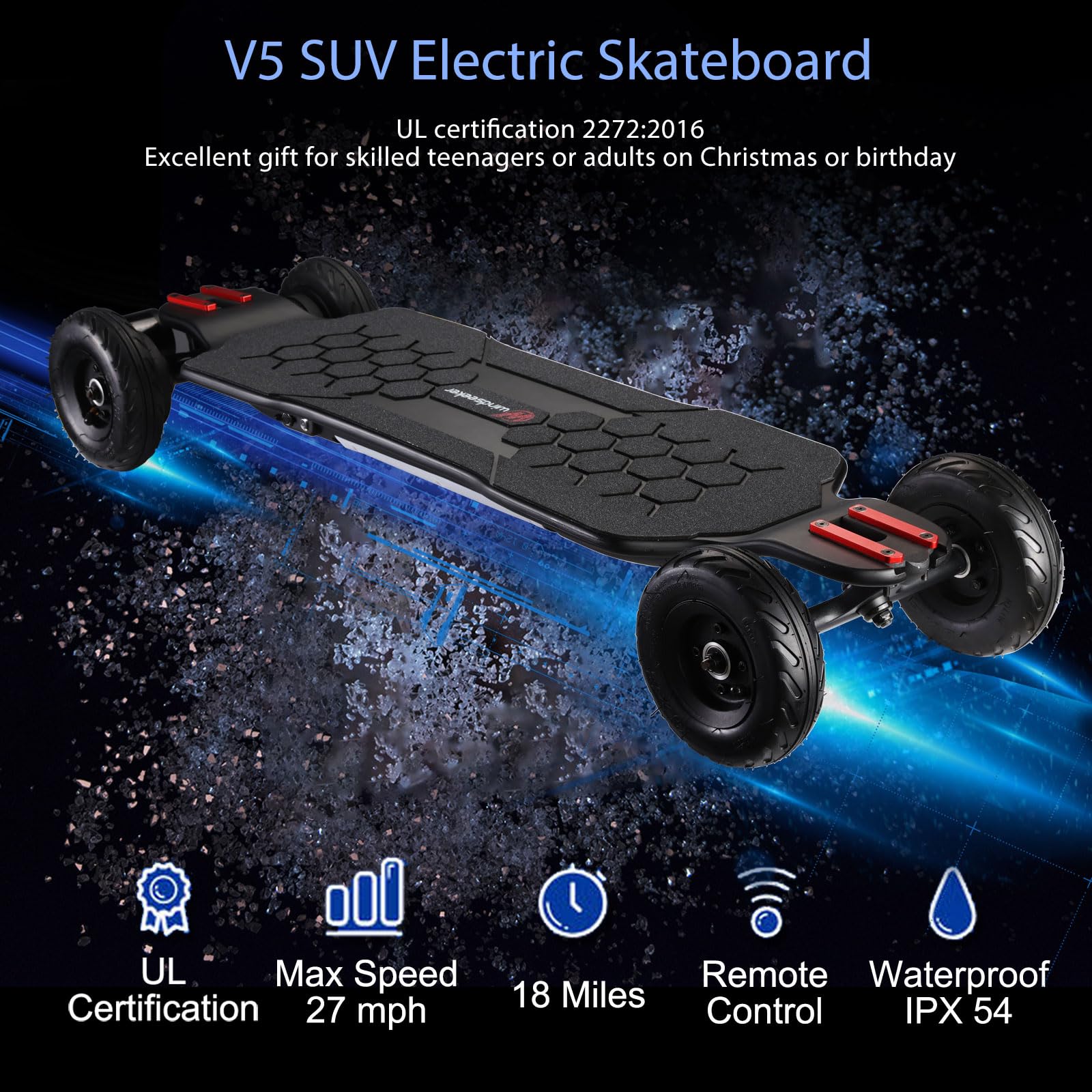 • 🛹【UL CERTIFICATION & 6 MONTHS WARRANTY】UL certification 2272:2016,No worry to buy!▶ Windseeker V5 SUV Electric skateboard is designed for Electric skateboard enthusiasts who love fast and furious and a great gift on Christmas or birthday. ▶ WINDSEEKER offers 6-months-after-sale support to make sure your skateboard operates correctly. ▶ Please wear protective gear before riding.