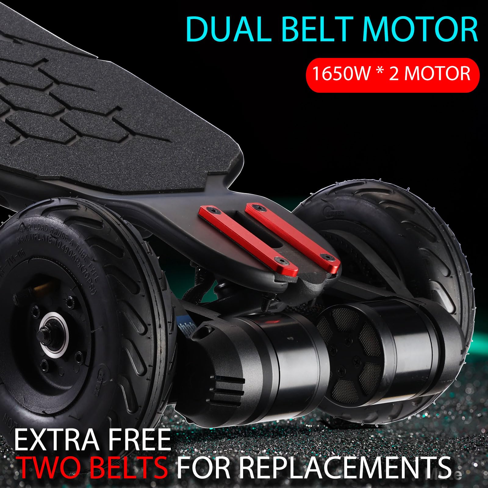 • 🛹【POWERFUL MOTOR & THICKENED 3MM SANDPAPER】1650W*2 Dual belt motor drive offer the most powerful motivation which may up to 27 MPH and that can climb 20°hill and strong enough to brake effectively. ▶ More thicker then other sandpaper,plus to 3mm to feel more comfortable while riding.