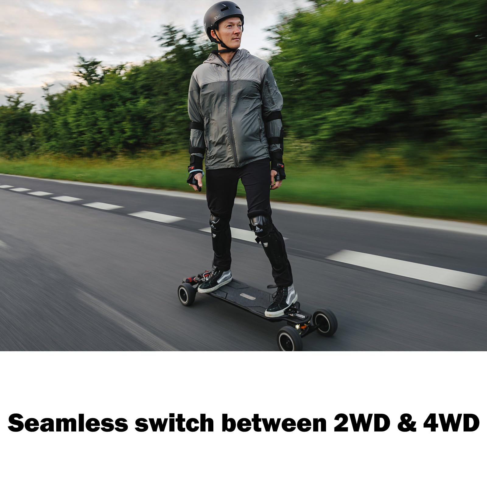Pro 4WD All-Terrain Off Road Electric Skateboards, Top Speed of 35 Mph, 24 Miles Range, 7000W Quad Motor, IP55 Waterproof