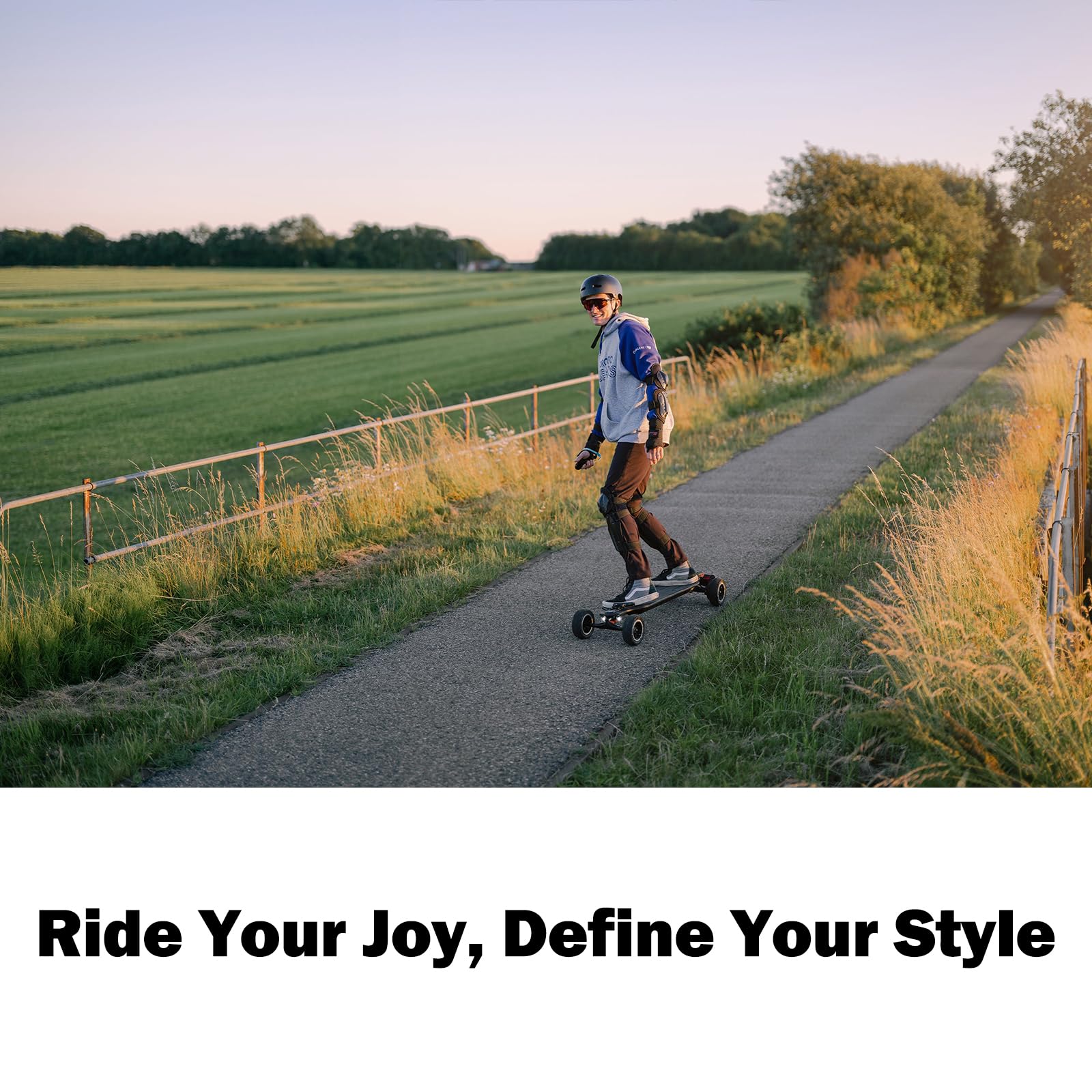 • Smooth Control: The Atlas Pro off road electric skateboard uses The ergonomic remote to give you full control for navigating tricky terrain. On fast straightaways or winding mountain roads, responds instantly to your input via the wireless remote. You'll feel in total control as you carve effortlessly through any environment.