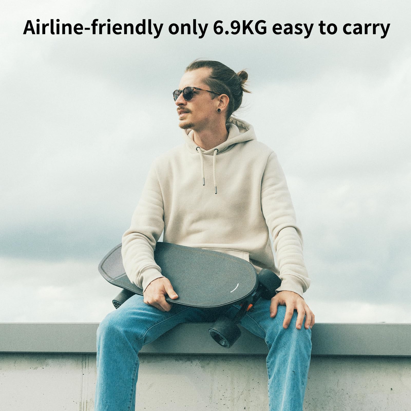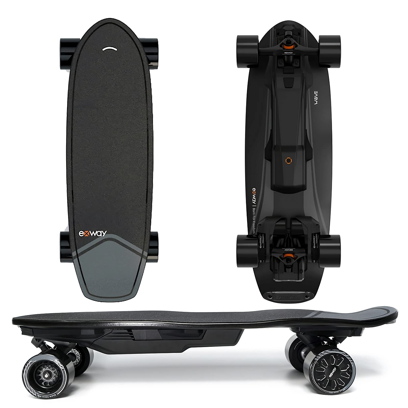 - [Unmatched flexibility] Exway Wave is not only smaller in size and weight, but also meets the performance needed for daily use. You can put it under your seat, throw it in your suitcase, the possibilities are endless. Also a shorter distance between front and rear trucks with kick tail design leads to an unparalleled agility; Standard equipped tail puck can better protect the deck without having to worry about wearing down the deck.