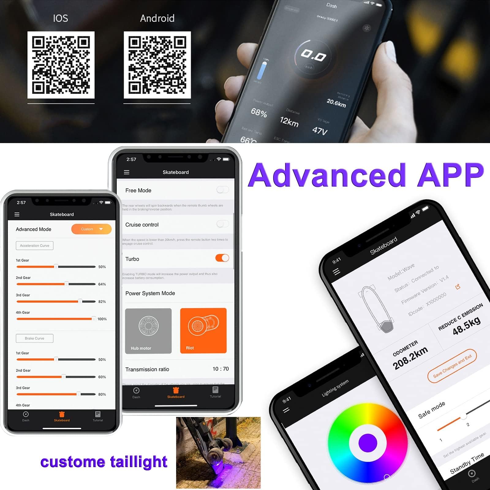 - [Hassle-Free Lighting with ESC 2.0] To maximize the space available for the battery module, we've built the ESC into the base of the drivetrain. And we didn't stop there.Front and rear lights powered by the battery module have also been integrated into the base of the trucks,controlled by one touch button on the remote.No more bending down to turn your lights on, no more forgetting to charge your lights, just grab your Wave and go ride!