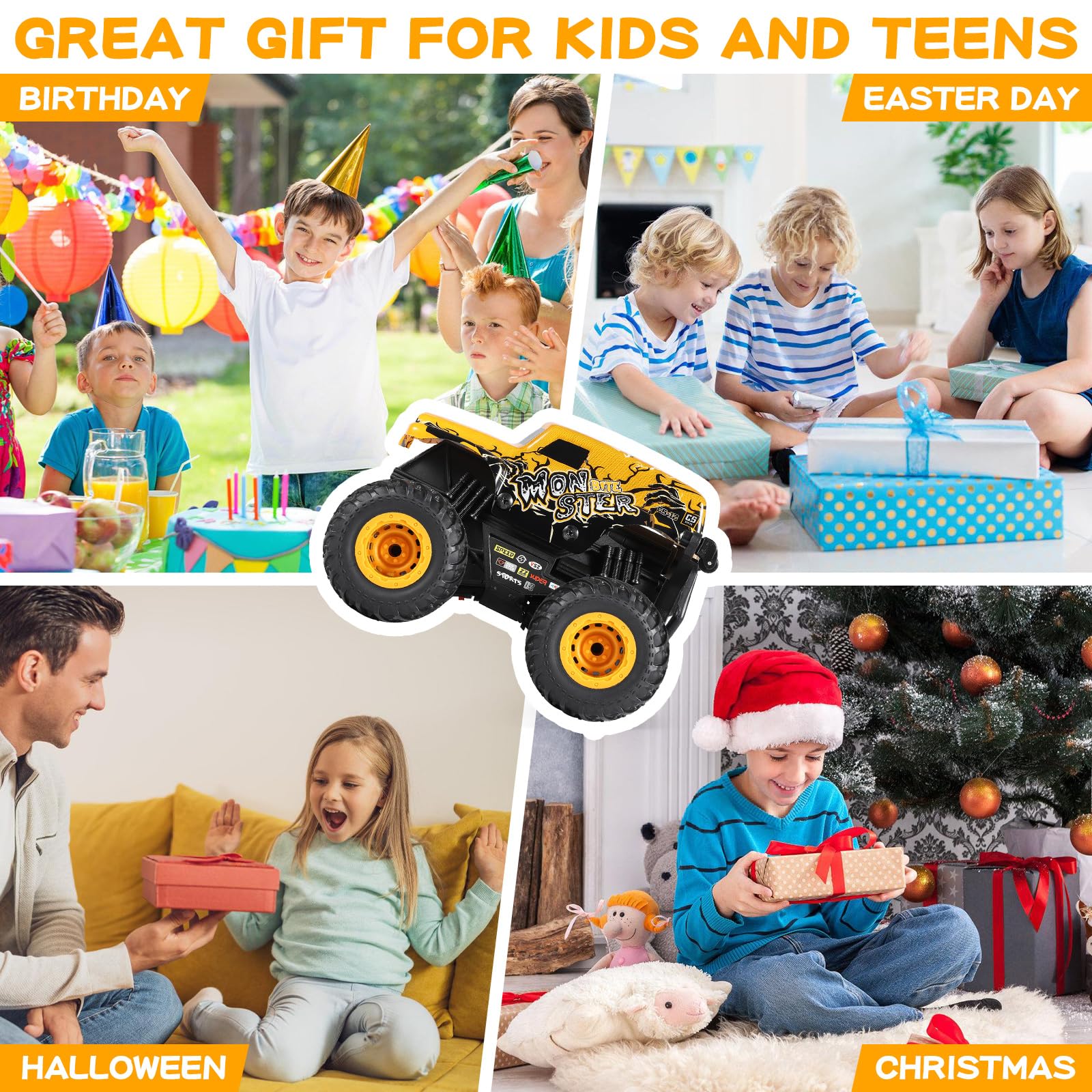 • Gift for Boys and Girls - This cool rc monster truck is perfect for any occasion - birthdays, anniversaries, farewell, Halloween, Thanksgiving, Christmas and New Year. With endless possibilities for imaginative play, it's sure to bring smiles to kids' faces. It will be a great gift for boys and girls.
