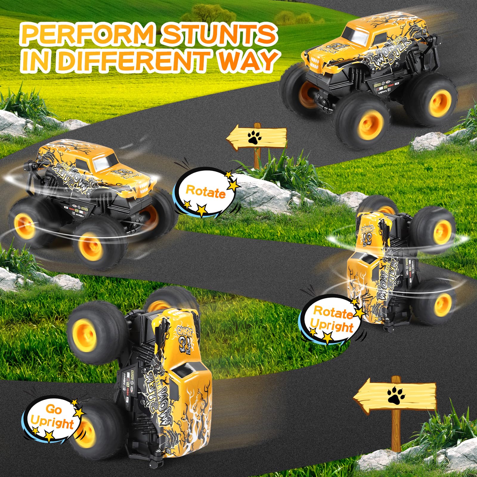 Remote Control Car, 2.4Ghz All Terrain Monster Truck Toys, RC Truck with Music, 3 Lighting Effects, 360 Stunt (Yellow)