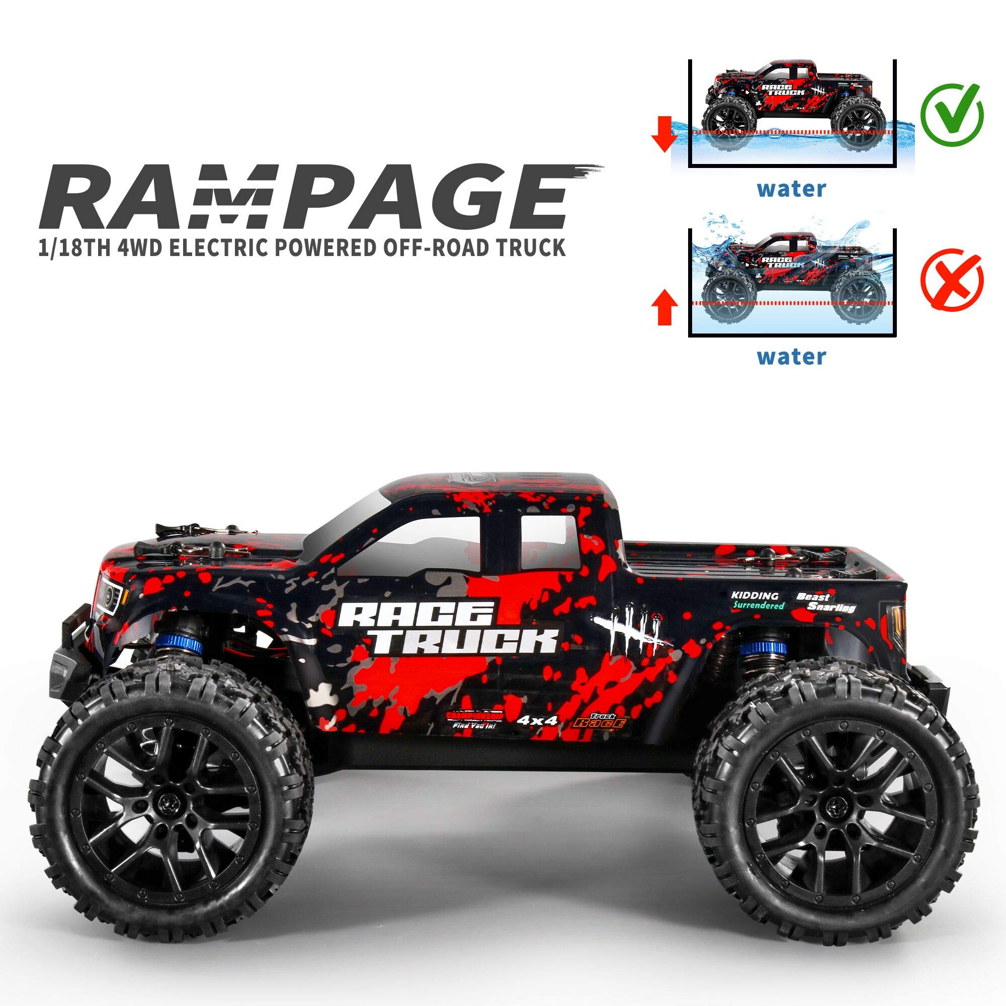 • Powered with superb and fast brushed RC380 motor in unceasingly efficient drivetrain , this 4WD truck Rampage speeds topping to 36 km/h, which finds operators in marvelous enjoyment