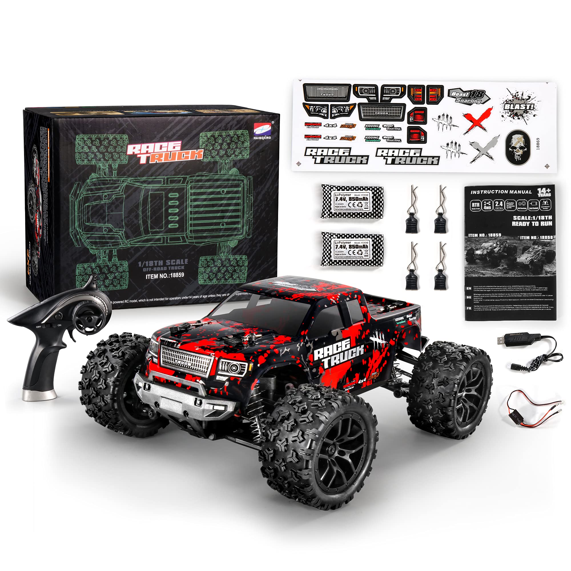 1:18 Scale All Terrain RC Car 36KM/H High Speed, 4WD Electric Vehicle,2.4 GHz Radio Controller, Included 2 Batteries (Red)
