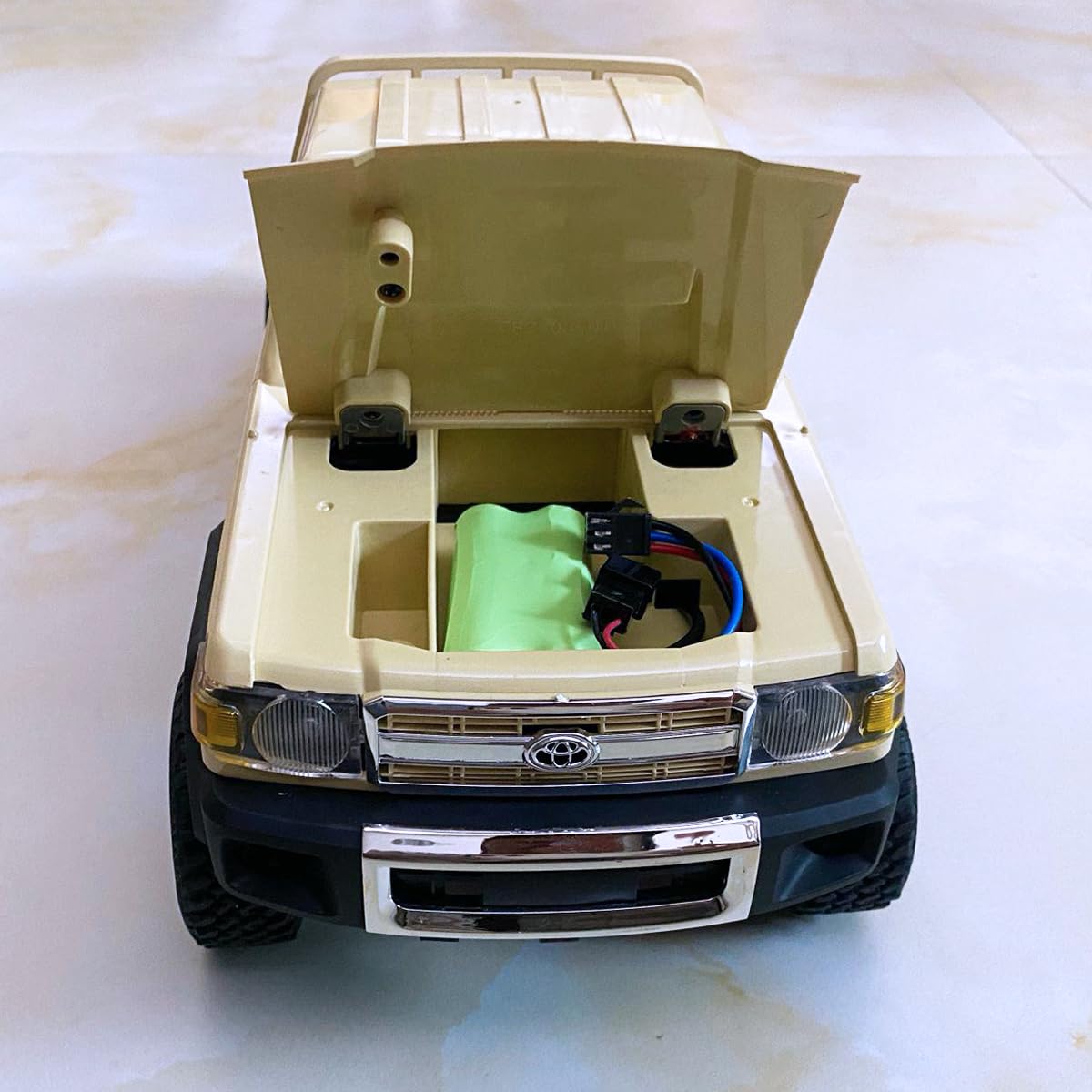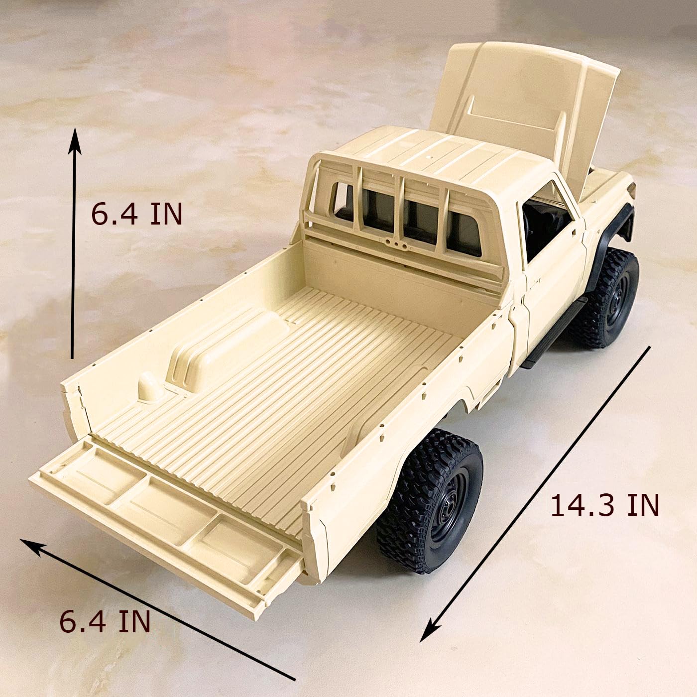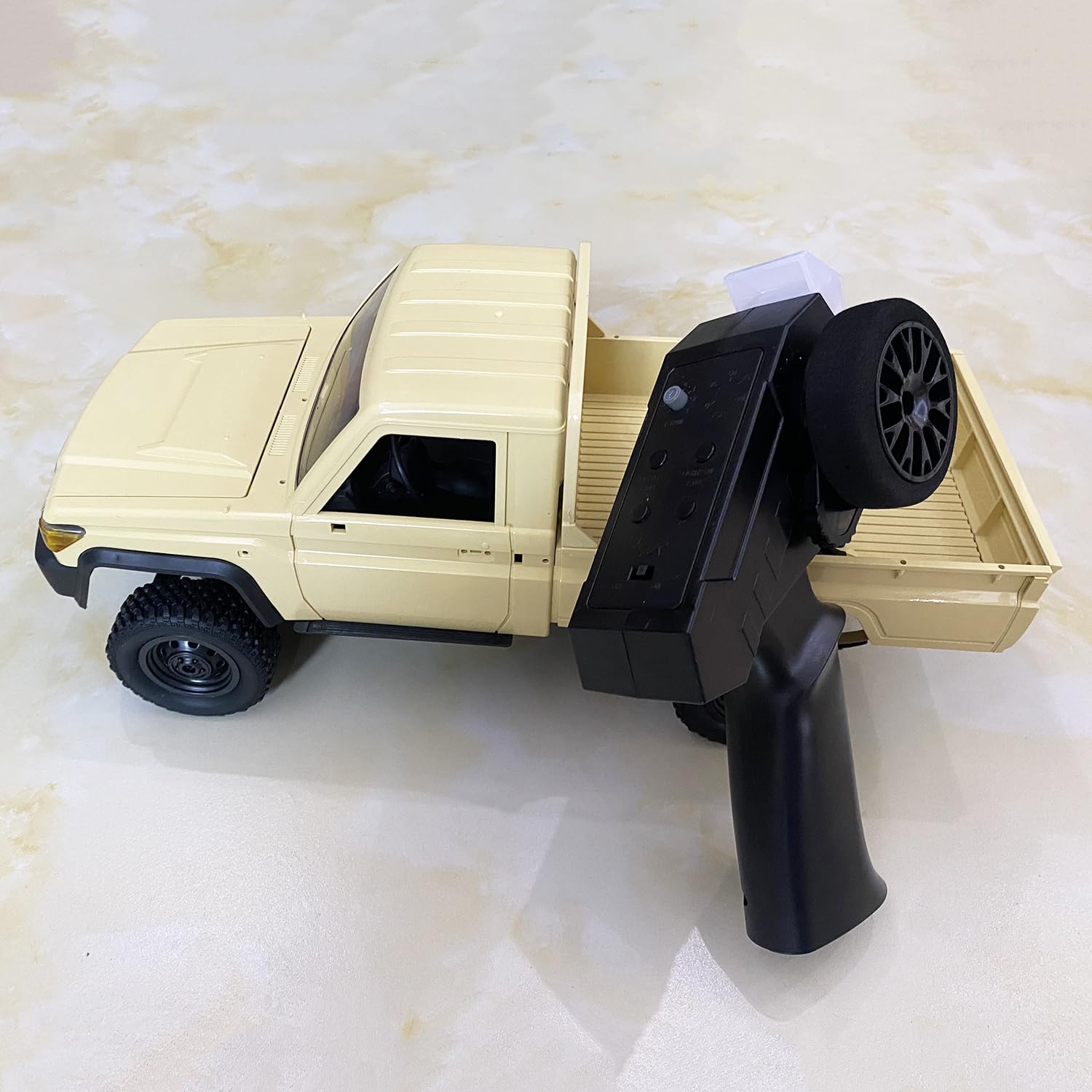 - 【Conquer Various Terrains】The 280 brushed motor 4-wheel drive provides powerful strength that allows the RC truck 4x4 to climb rocky and uneven surfaces. With high-quality rubber tires, the crawler's strong grip forces it to drive on various terrains such as beaches, sand, mountains, grass, roads, muddy patches, rocky trail paths, or rugged roads. The Landcruiser RC truck can move a long distance and satisfy your wish.