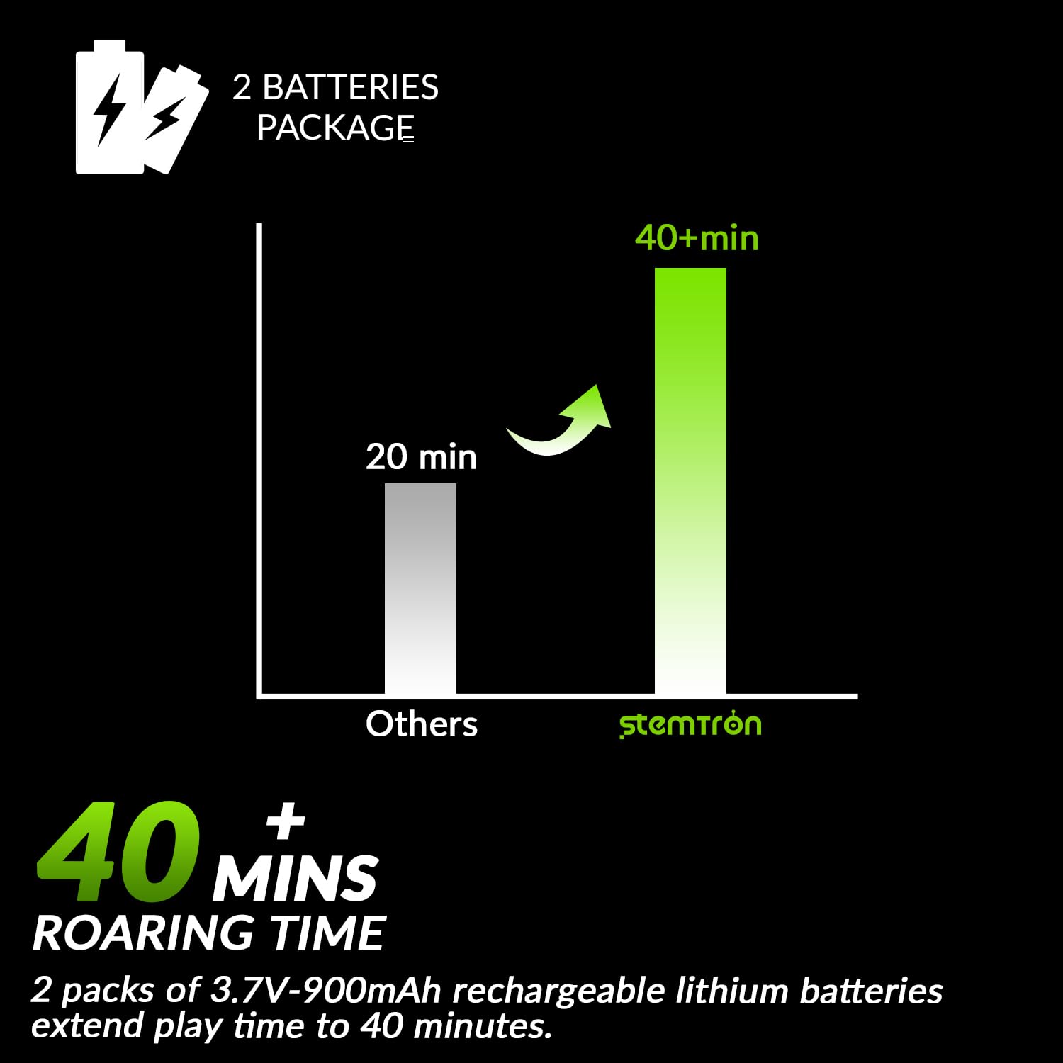 - [RC Car with 2 Lithium Batteries] 2 lithium batteries provide the remote control truck with up to 40+min of playing time, which will allow you to get rid of the worry of battery level. The cool painting and appearance will make the kid fall in love with this rc monster truck at the first sight.