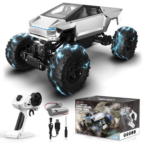 1/14 Scale 4WD RC Monster Truck, 2.4GHz Remote Control Car with LED Lights, All-Terrain Off-Road Toy