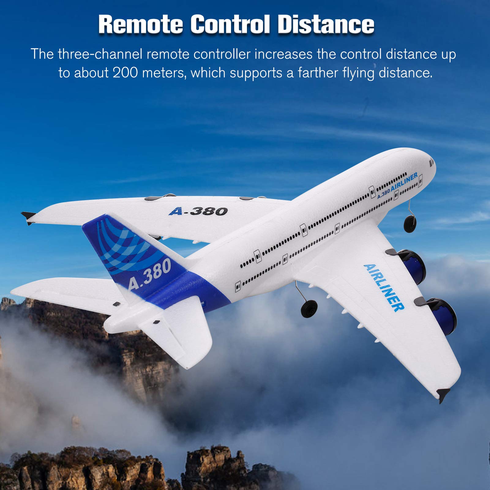- The three-channel remote controller increases the control distance up to about 200 meters, which supports a farther flying distance. The remote controller makes distinctions between small and large rudder. The small one is suitable for beginners. With the controller in the large rudder state, if you keep moving the joystick up and down, the aircraft will make a head rotation.