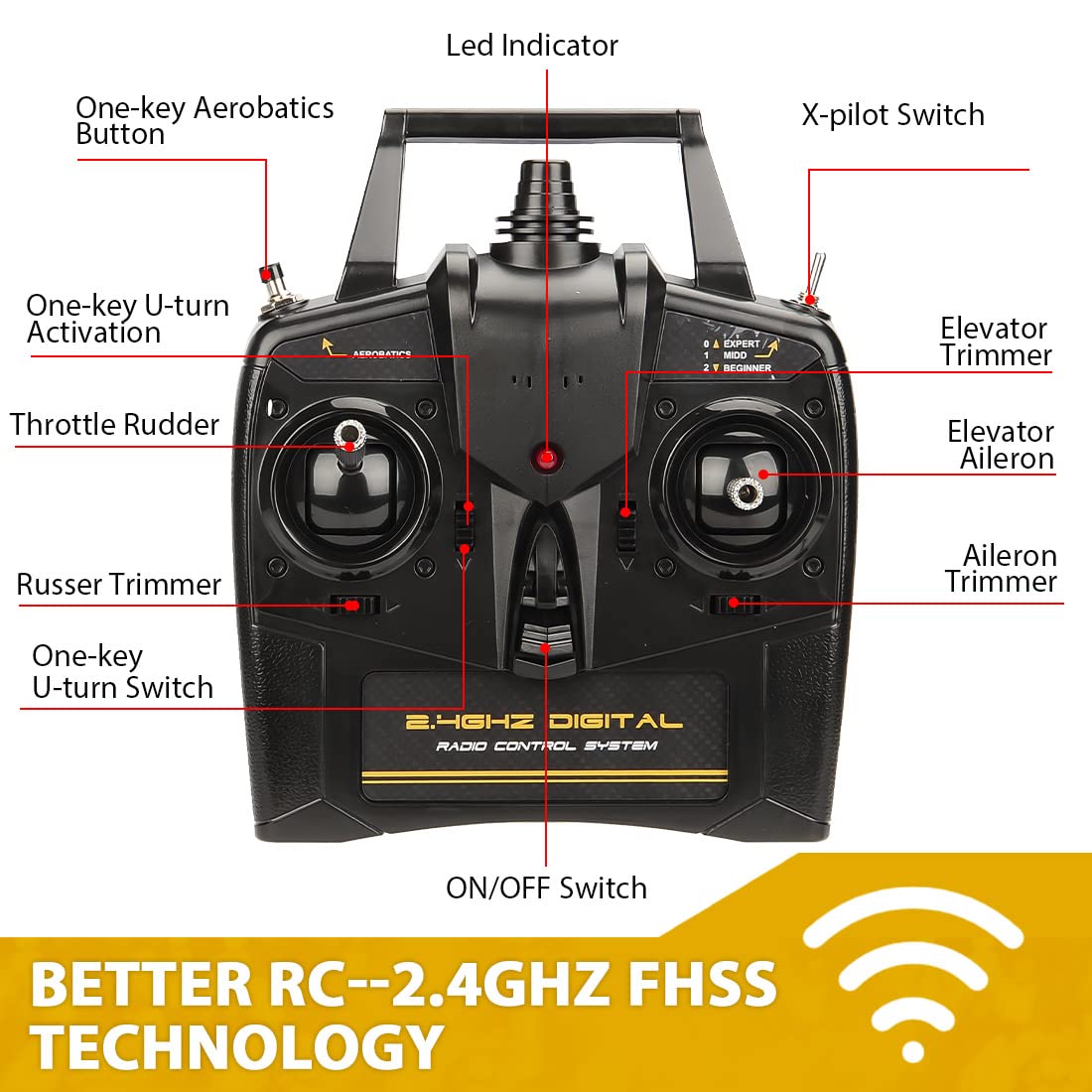 • 【Frequency-Hopping Spread Spectrum】2.4Ghz FHSS RC technology allow more than 20 aircraft's to fly at the same time and flying up to 656 ft, the strong anti-interference ability allows to hold a small flight club party between you and your friends.
