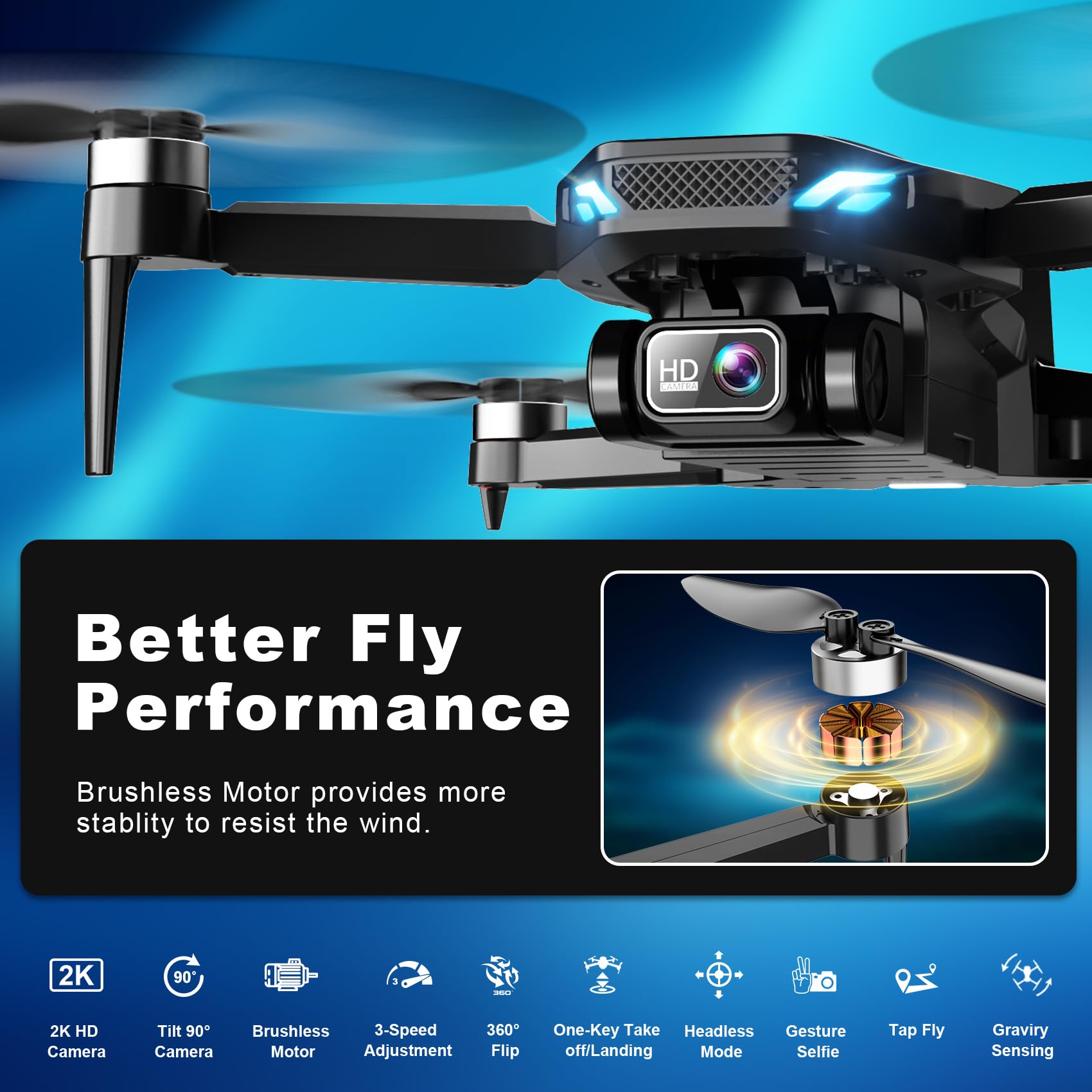 Drone with Camera, 2K FPV Drone with Brushless Motor, Altitude Hold, Gesture Selfie, One Key Take Off/Landing