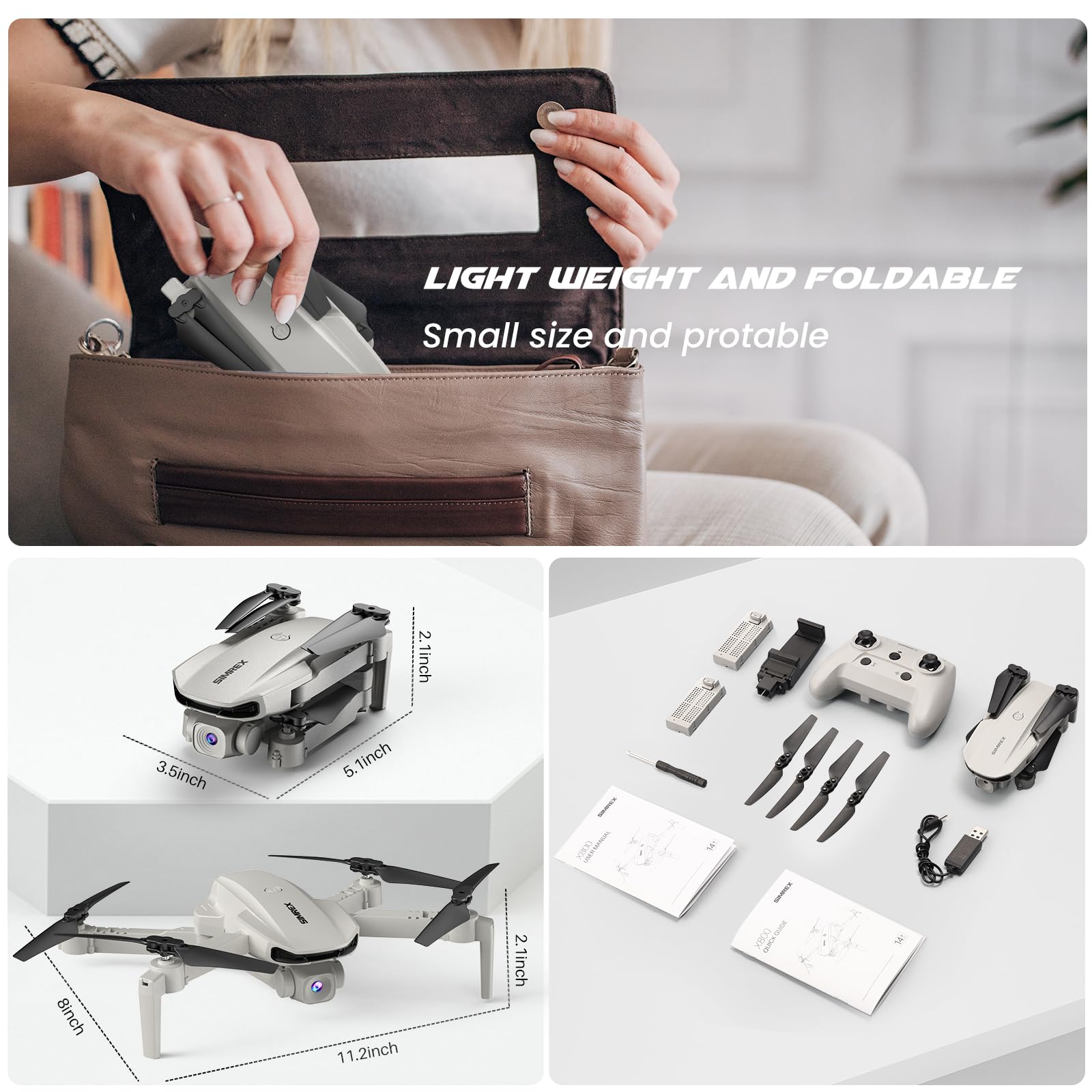 - [Foldable and Portable Design]: SIMREX X800 mini drone is light, equipped with a 1080P camera, adjustable 90 lens, and weighs only 96g. It is fashionable and lightweight, and it is convenient for you to carry with you. It is equipped with RGB lights, so you don't have to worry about flying at night, and it can assist you with wonderful images anytime and anywhere!