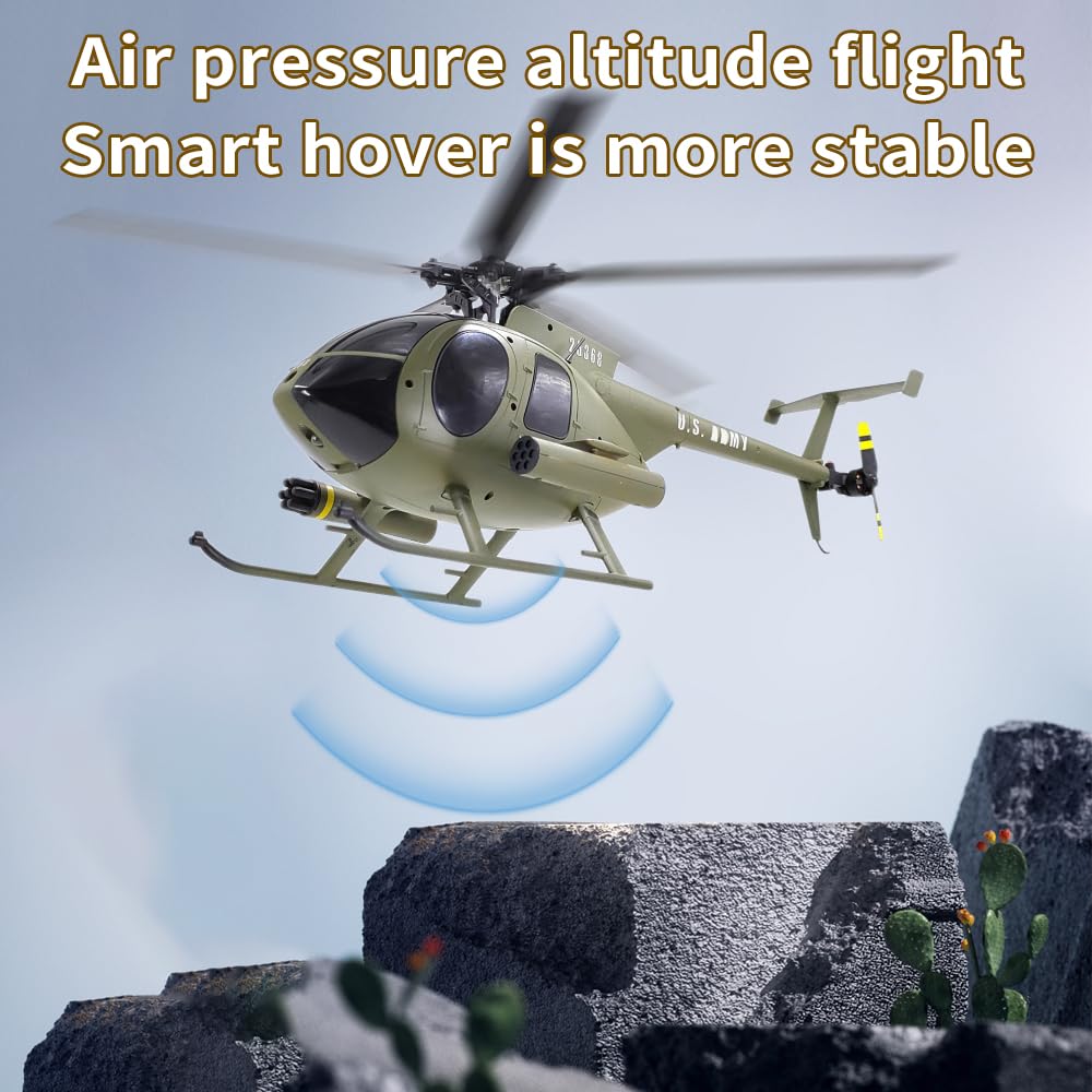 • MD500 RC Helicopter Model: The appearance is scaled down according to the MD500 Little Bird real helicopter, up/down, forward, backward, turn left/right flying, left/right rotation flying, optical flow hover and other actions. 1:28 scale RC helicopter is a portable and small-sized aircraft that is more convenient to carry when traveling, allowing you to enjoy flying everywhere.