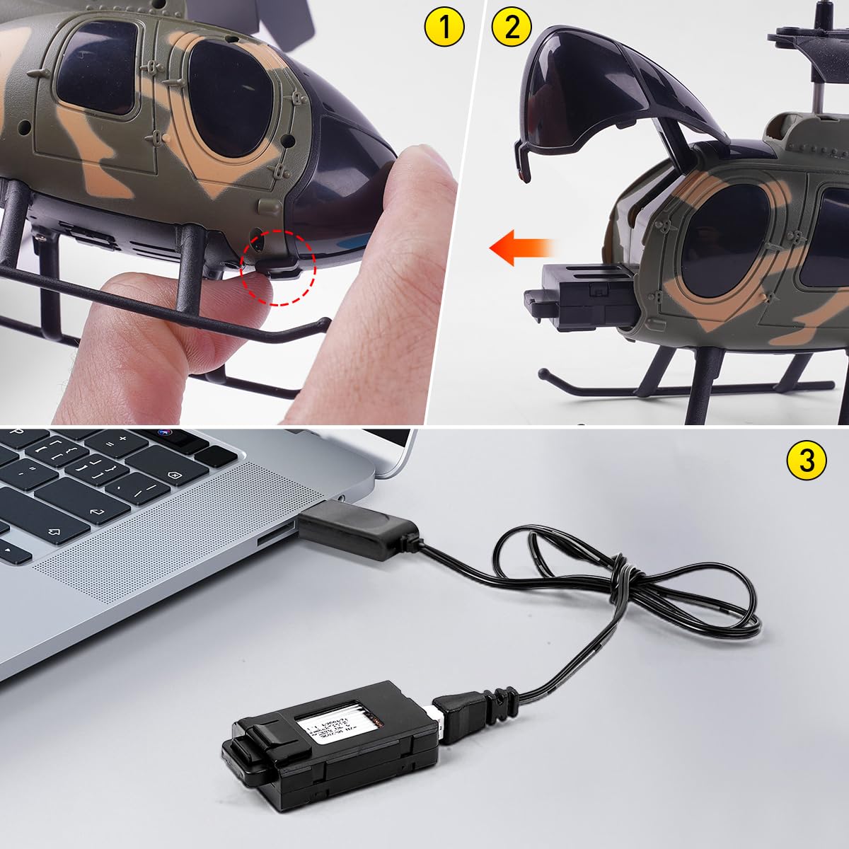 • 【Built-in USB Charging Battery】Each remote control airplane is equipped with the latest built-in rechargeable battery, the USB charging cable ensures that a variety of suitable ports can be found at all times, and the built-in battery avoids the worry of losing it, a thoughtful and practical design. Please open the head of the helicopter to take out the battery,then connect the charger port to USB charging. It about need to charging 1-2 hours