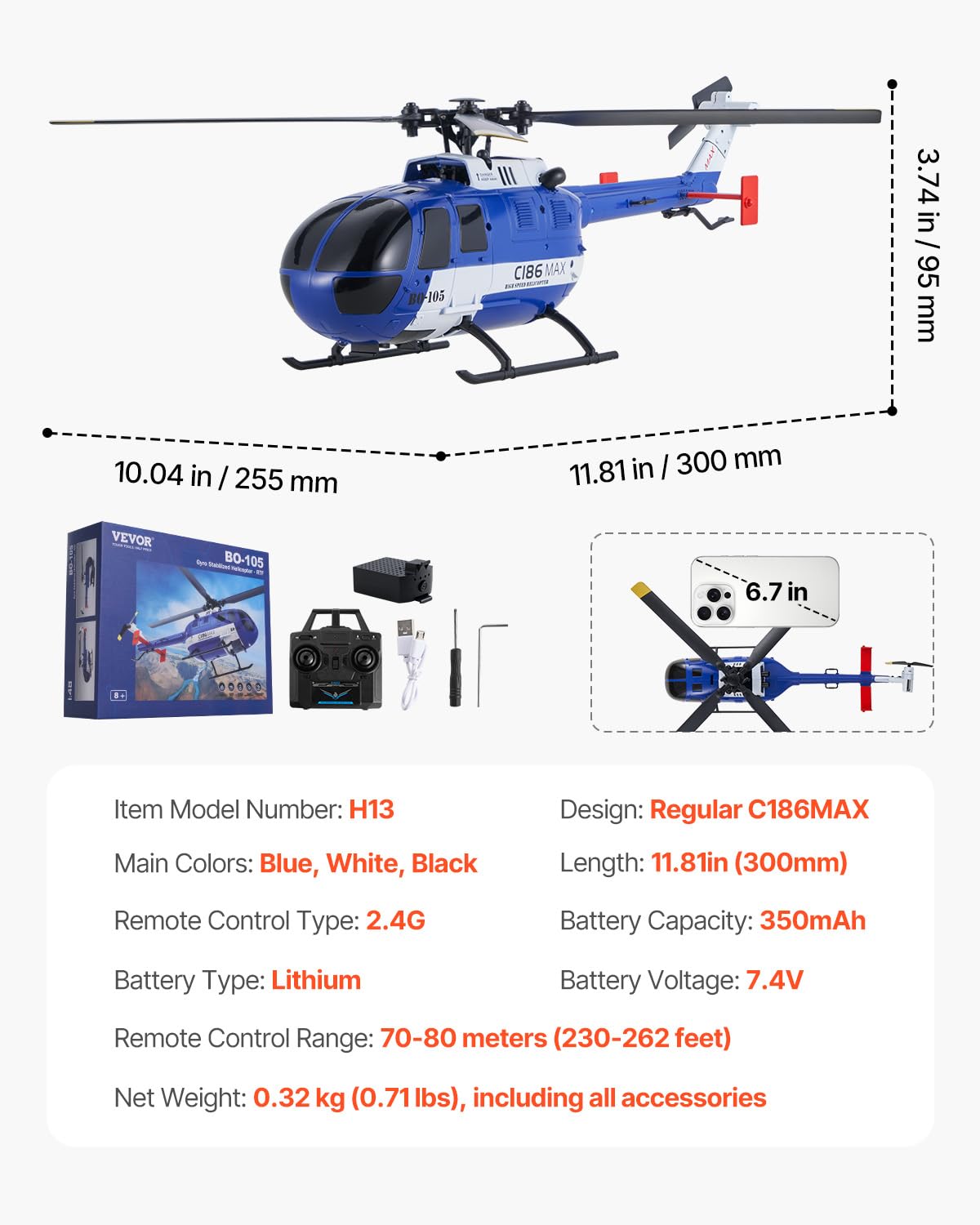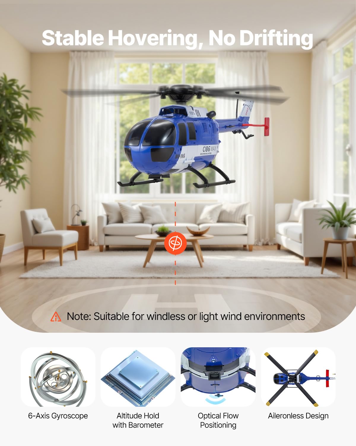- Easy to Master: The RC helicopter features one-key takeoff and landing that makes flying simple, even for beginners. With added features like side flying, hovering, and route flight, it opens up a wider range of fun flying options.