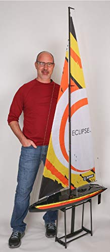 Perhaps the most impressive feature of this sailboat is the size - measuring over 7' (213cm) tall from the bottom of the ballast bulb to the tip of the mast. The Eclipse 1M is an RTR boat, and arrives with everything required to start sailing except for the AA batteries. In addition to the pre-trimmed and decorated hull, inside you'll find a 2.4GHz radio system, rip-stop nylon sails and all the rigging parts necessary to easily build the mast. It also includes a lightweight boat stand for display and maintenance. Best of all, the Eclipse is quickly and easily dismantled for storage and transportation.