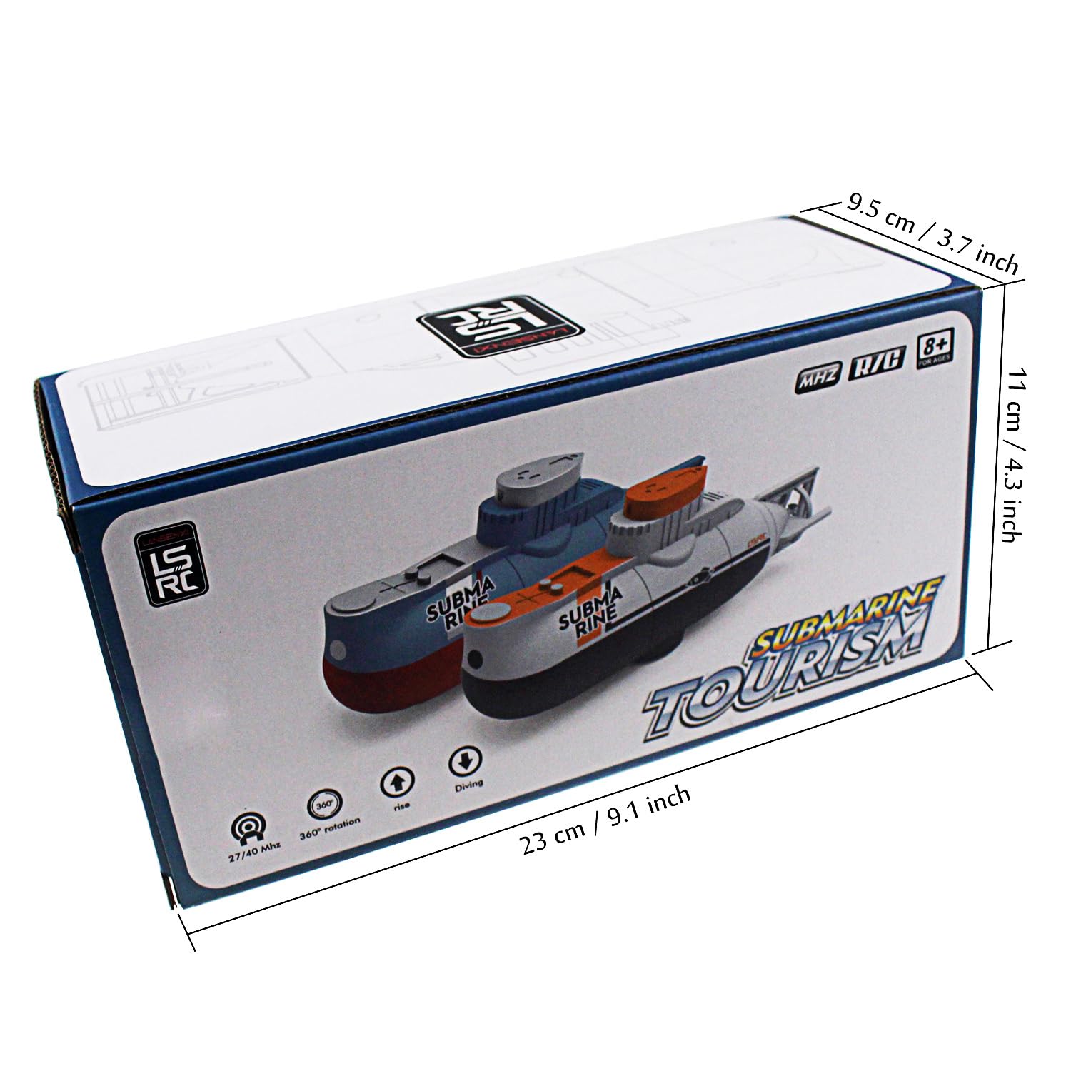 • 【Specifications】Working Time: 15 - 20 Minutes, Charging Time: 30 Minutes, Remote Control Distance: 3 m/9.8 ft (Indoor), Submarine size: 5.7 x 2.2 x 1.6 inch