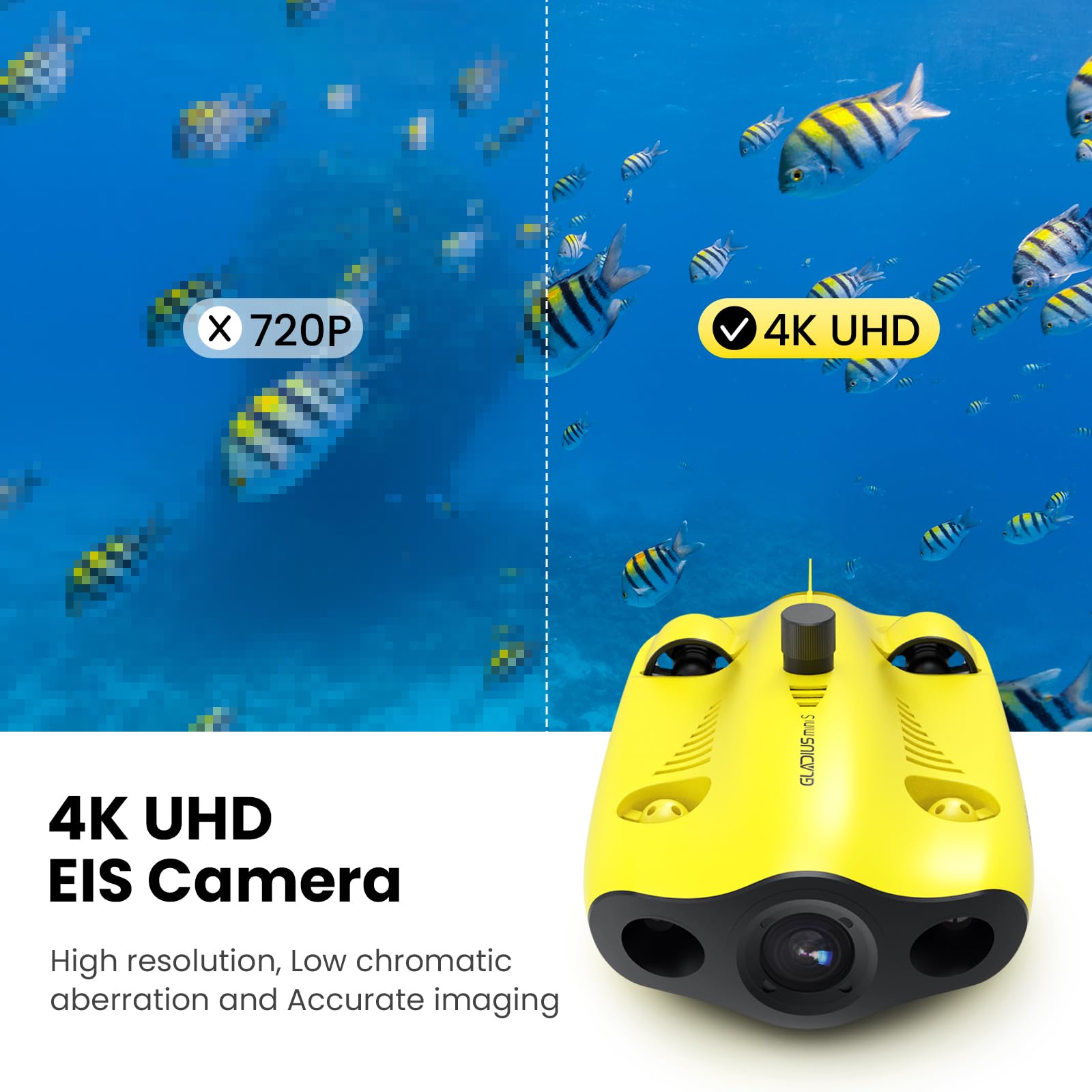 • 💦More clearer And More Stable🚣GLADIUS MINI S captures epic moments with 4K HD video and 12 MP photos. It also comes with a 1/2.3 SONY CMOS, anti-video-shake feature, so you can record the beauty of the mysterious underwater world with more stable and vivid UHD video. With the combination of F2.8 lens and 2 x 1200 lumens LED lights, GLADIUS MINI S underwater drone can capture underwater details even in low light