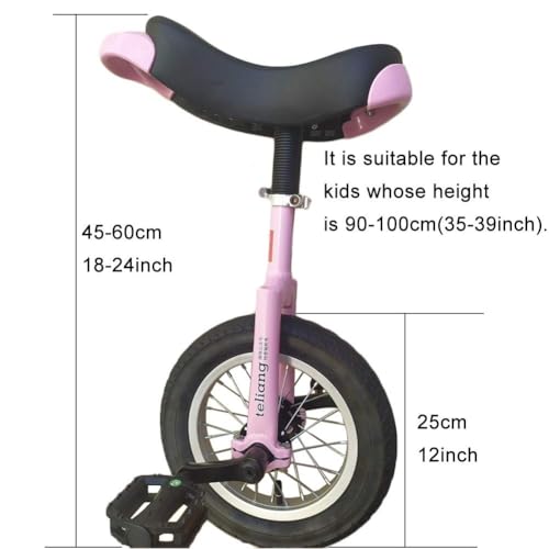 Single Wheel Unicycles 12" Kids Small Unicycle ,One Wheel Bike with Anti-Skid Alloy Rim and Pedal Adjustable Height, Pink