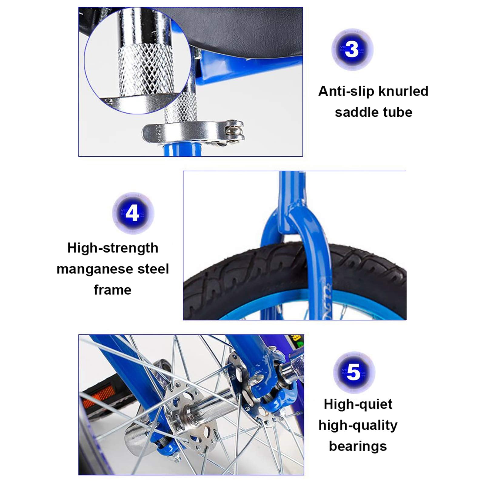 • ★High-quality and solid structure: manganese steel frame, high-quality forged crank, sturdy and durable, high-quiet bearing, more stable movement. Suitable for riders of all sizes. Anti-slip tread tires can carry 220KG / 485LB. It is very suitable for children and adults, novices to train balance and strength.
