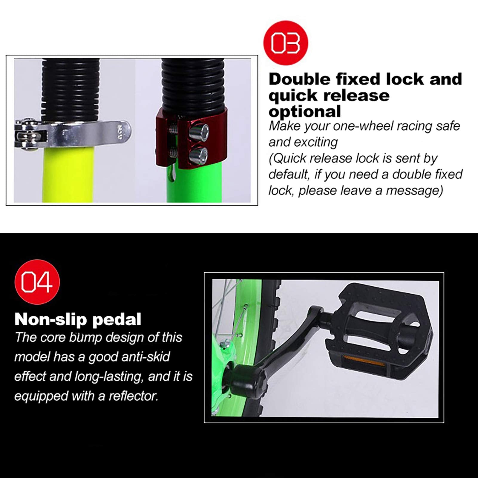 - ★High-quality and solid structure: The unicycle manganese steel structure, high-quality forged crank, sturdy and durable, bearing silent, and more stable movement. Suitable for riders of all sizes. Anti-slip tread tires can carry 150KG/330LB. It is very suitable for children and adults, novices to train balance and strength.