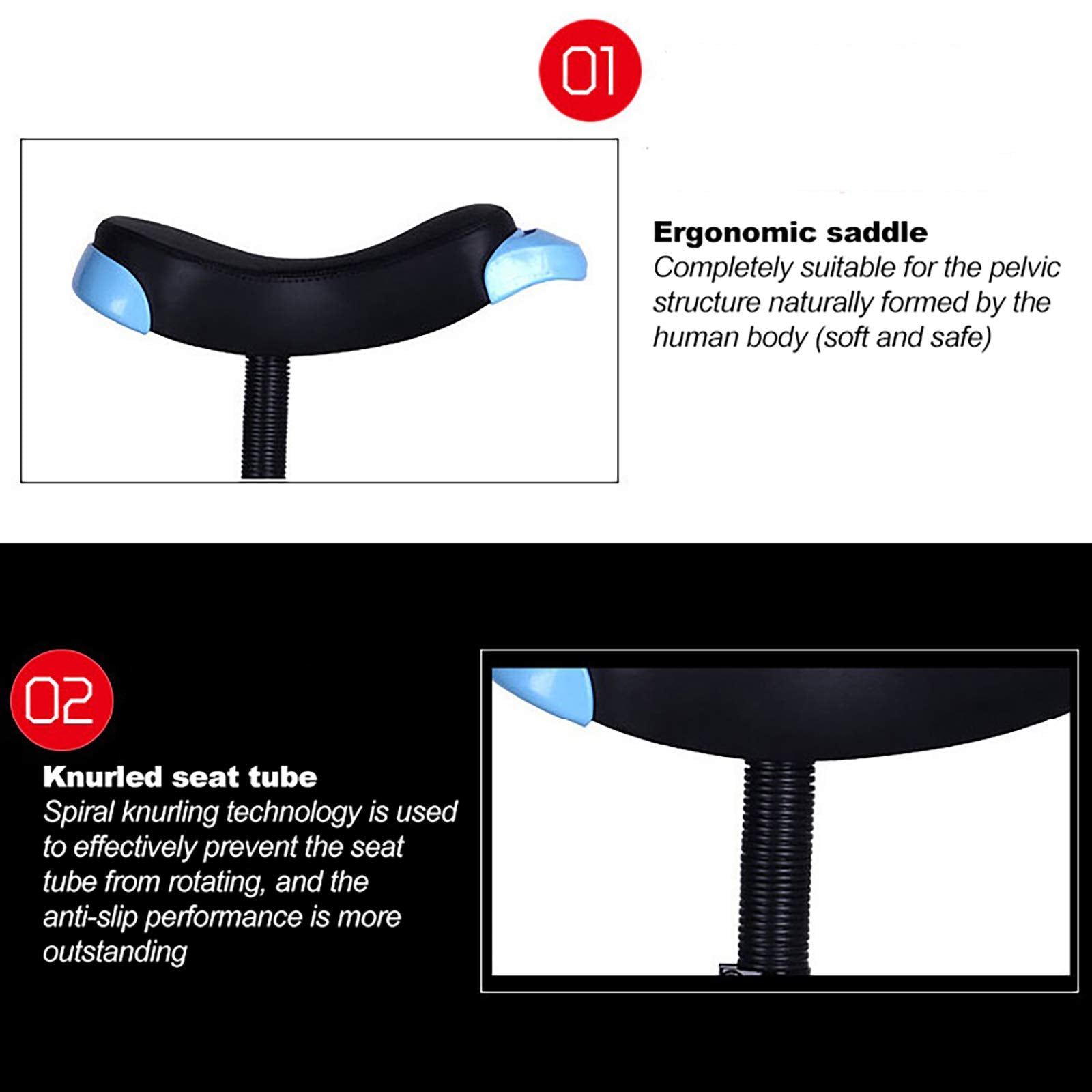 - ★Comfortable design: According to human organs and sports characteristics, ergonomics and seat handle design are rationally designed to provide a comfortable saddle, high front and rear positions, comfortable and durable, and unique front and rear armrest design. The quick-release Seatpost clamp is made of aluminum alloy and has a comprehensive ergonomic design. The seat height can be adjusted easily, quickly, and firmly.