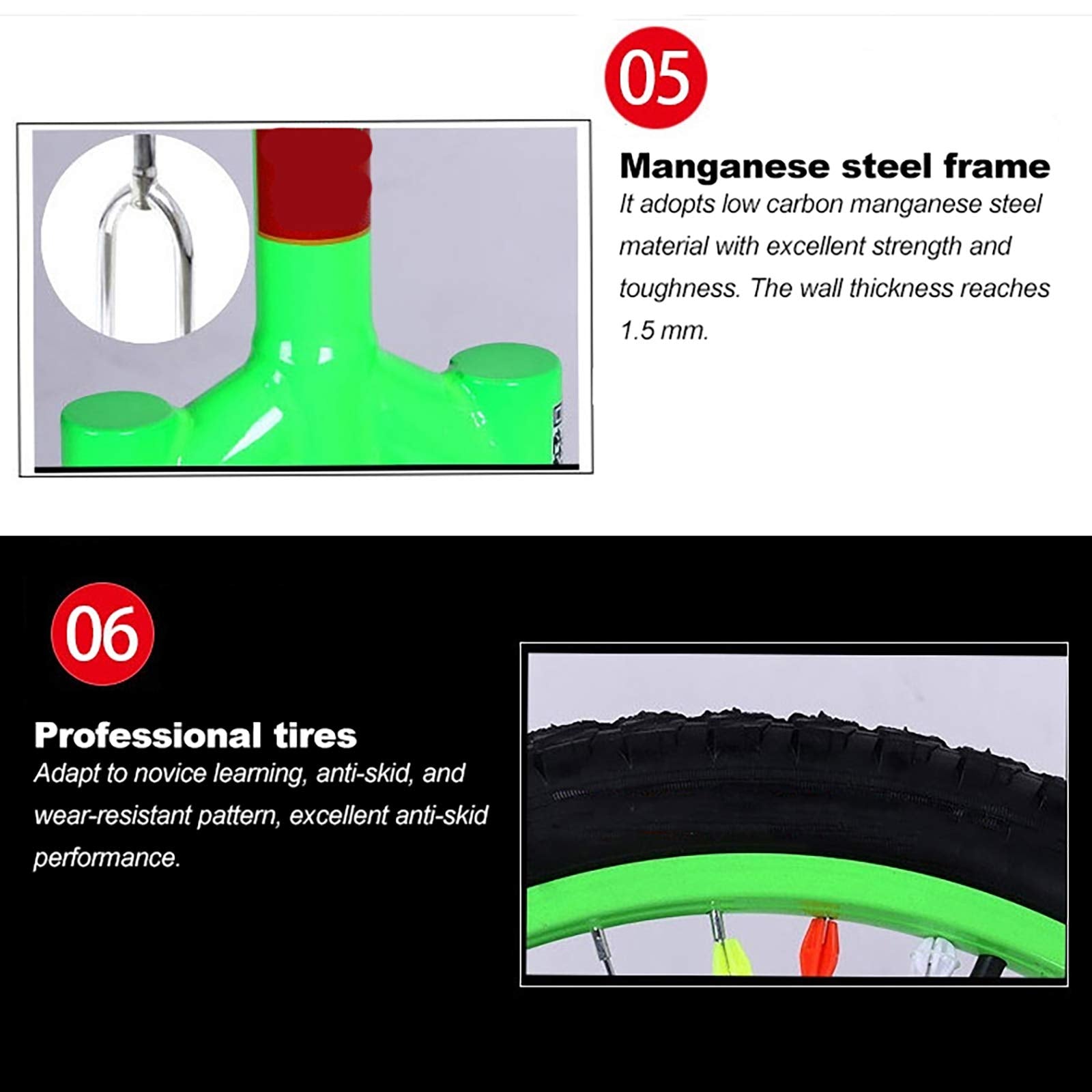 - ★High-quality tires: widened tires, non-slip wear-resistant, heavy-duty aluminum alloy rim design, stable. Color wheel design, stylish and beautiful. Also suitable for team competitions. Beaded non-slip pedals, equipped with night reflectors, anti-slip, drop-proof, and anti-collision.