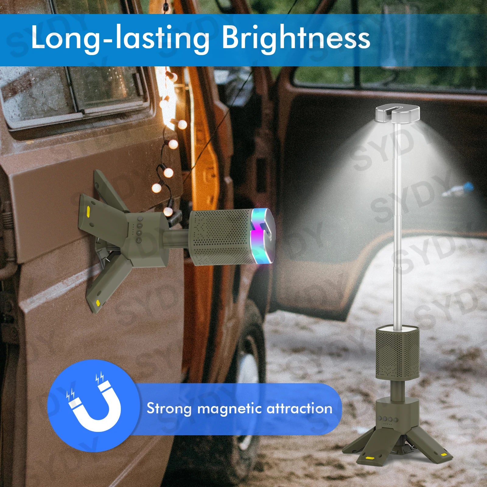 14000mAh Camping Lantern Rechargeable Telescopic Lighting Magnetic Stand with Speaker Portable Waterproof Outdoor LED Flashlight