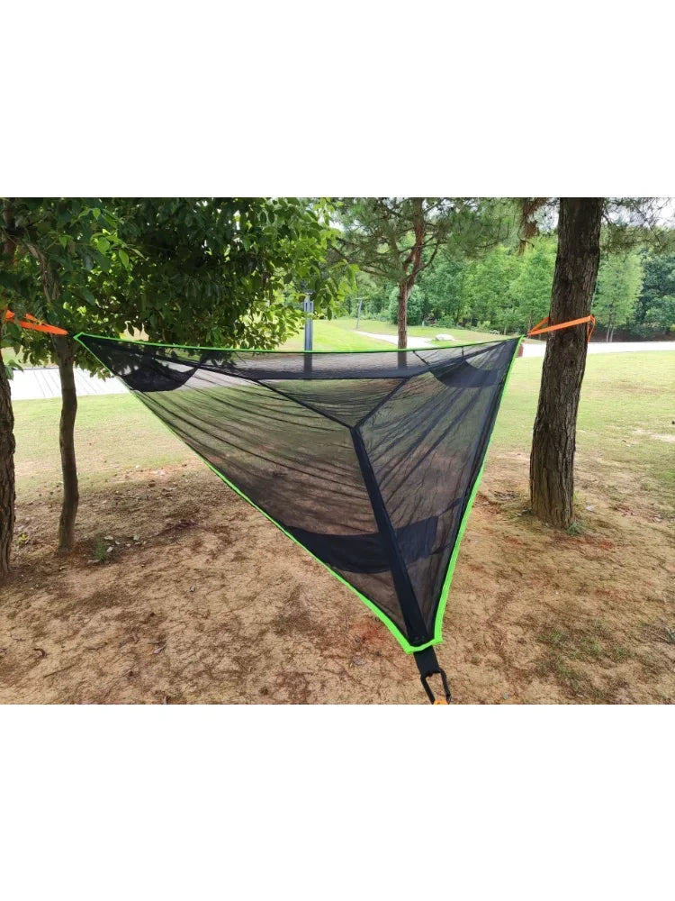 The Triangle Hammock is a versatile outdoor solution designed to accommodate 3 to 5 people, making it ideal for camping, cycling, or beach outings. Crafted from durable mesh material, this portable hanging tent ensures breathability and comfort while providing a secure sleeping space. Its lightweight design allows for easy transport, fitting seamlessly into car trips or self-driving adventures. Enjoy the convenience of a spacious sleeping bed or a relaxing mat, perfect for any outdoor setting.
