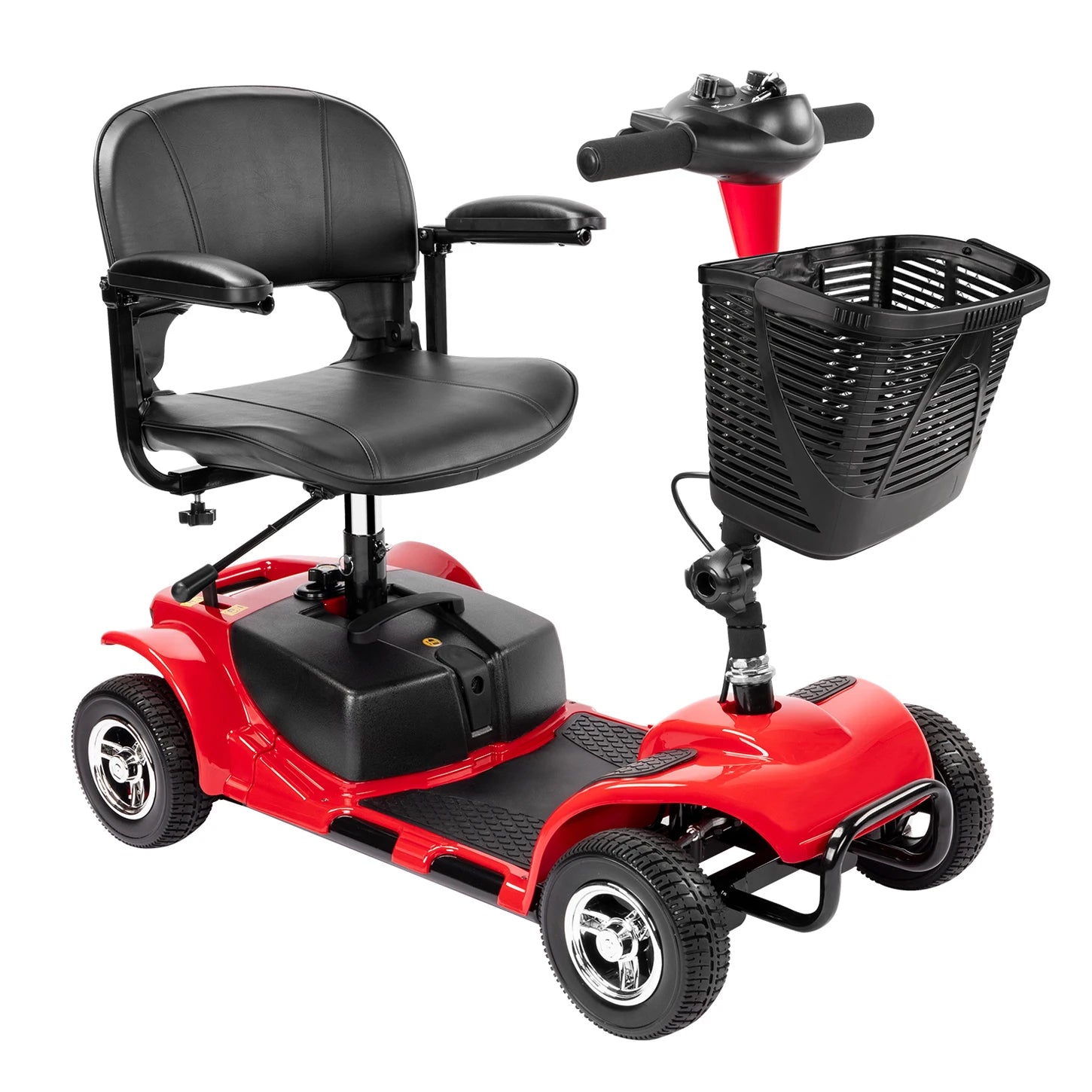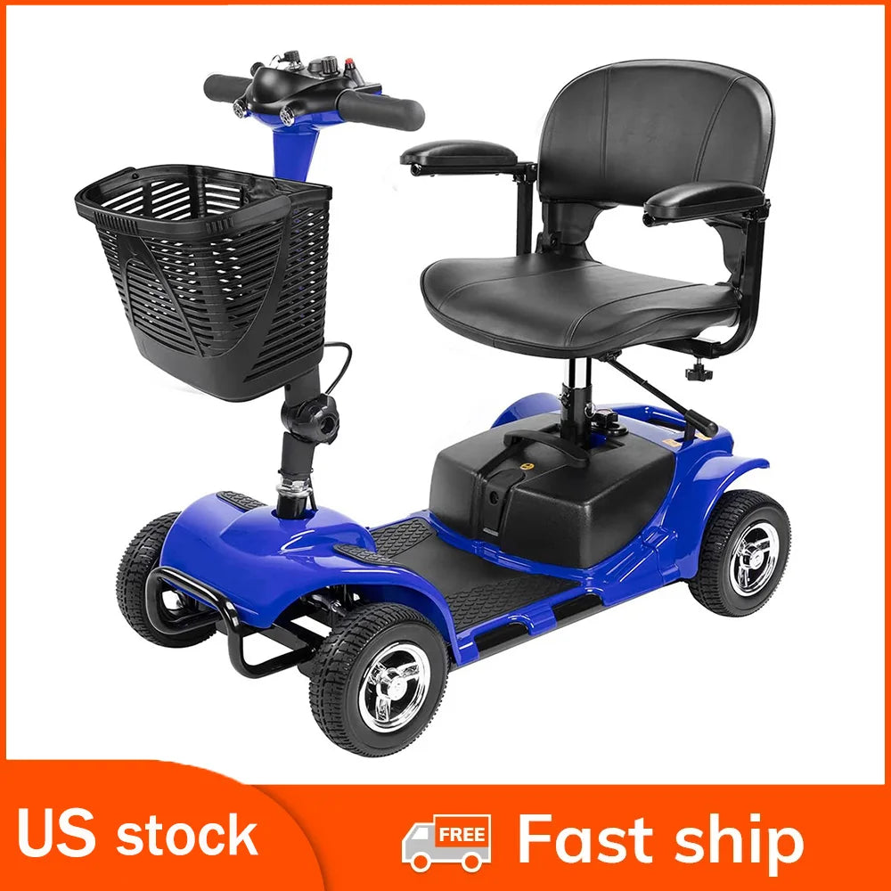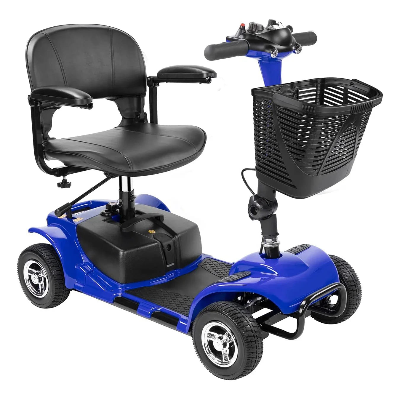 1. The 4 Wheel Mobility Scooter is an electric power mobile wheelchair designed for seniors and adults, offering a reliable and comfortable mode of transportation. Its collapsible and compact design ensures easy storage and portability, making it ideal for travel. Equipped with a convenient basket, this scooter provides ample space for personal belongings, enhancing user convenience. With a robust build, it is suitable for various terrains, ensuring a smooth ride for users seeking independence and mobility.