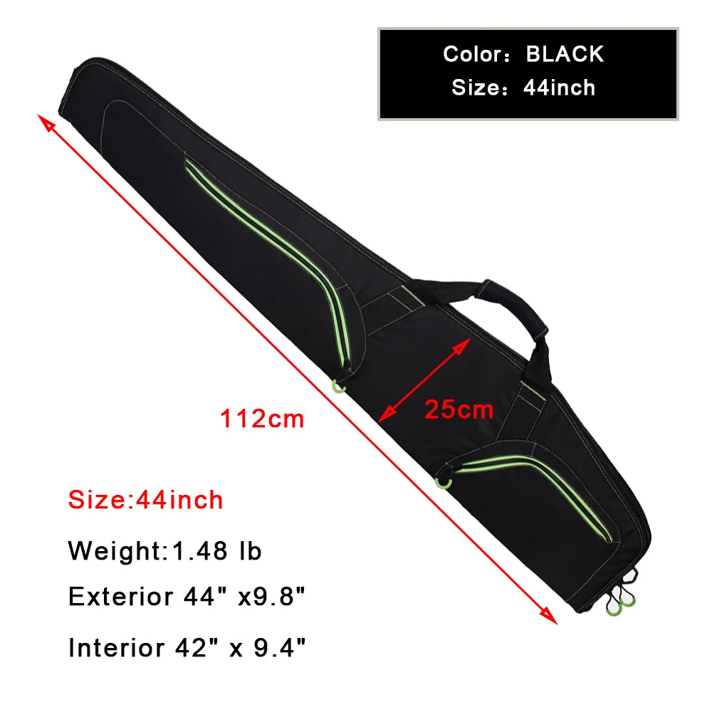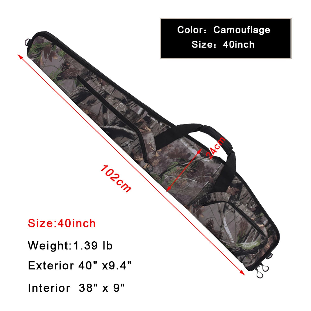 The 40/44/48/52 Inch Rifle Case is a versatile soft shotgun bag designed to accommodate various gauge shotguns and scoped rifles. Constructed with durable materials, it ensures optimal protection for your firearm during transport. The adjustable shoulder strap provides comfort and convenience, making it easy to carry. This case features ample padding and secure closures, safeguarding your equipment from external elements while allowing for easy access. Ideal for hunters and shooting enthusiasts, this rifle case combines functionality with a sleek design.