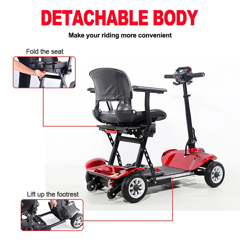 Introducing the China Collapsible Seniors 4 wheel Handicapped Foldable Medical Scooter, designed to provide stable and reliable mobility for elderly and disabled individuals. This foldable scooter offers convenience and ease of use, making it ideal for those with limited mobility. With its sturdy construction and four-wheel design, this mobility scooter provides a safe and secure way to navigate through various terrains. Whether for indoor or outdoor use, this collapsible scooter is a practical and efficient solution for individuals in need of mobility assistance.