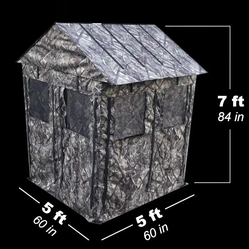 The Deluxe Steel Frame Hunting Ground Blind accommodates 3 to 4 individuals, providing a spacious and comfortable environment for outdoor enthusiasts. Designed with shoot-through mesh windows, it ensures optimal visibility while maintaining concealment, enhancing the hunting experience. The robust steel frame guarantees durability and stability, while the included anchoring system secures the blind against wind and other elements, making it a reliable choice for any hunting expedition.