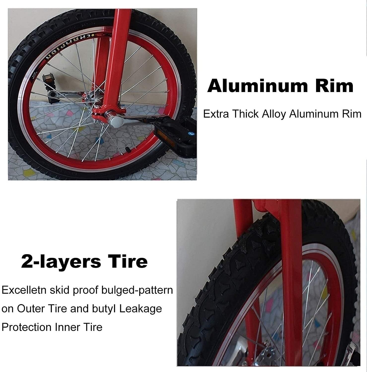 - Durable Construction: Made with a sturdy alloy rim, extra-thick tires, and a skid-proof design for safe, long-lasting use.