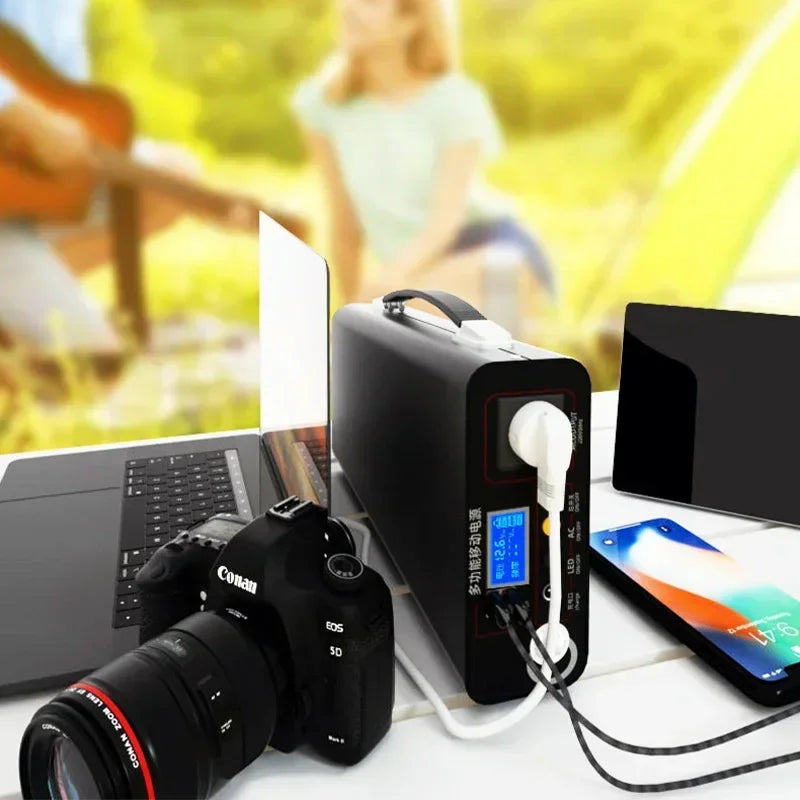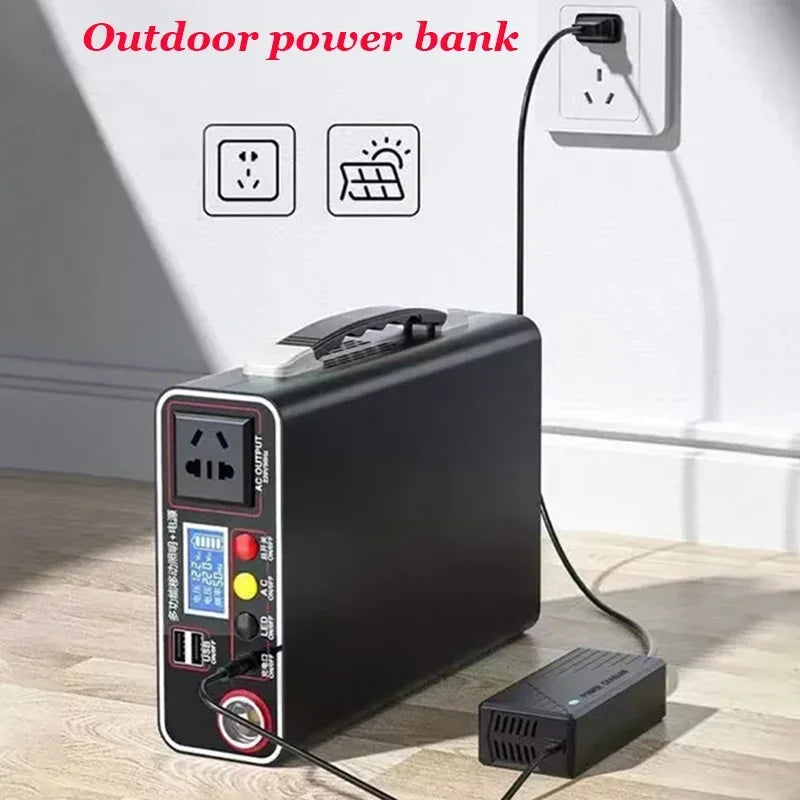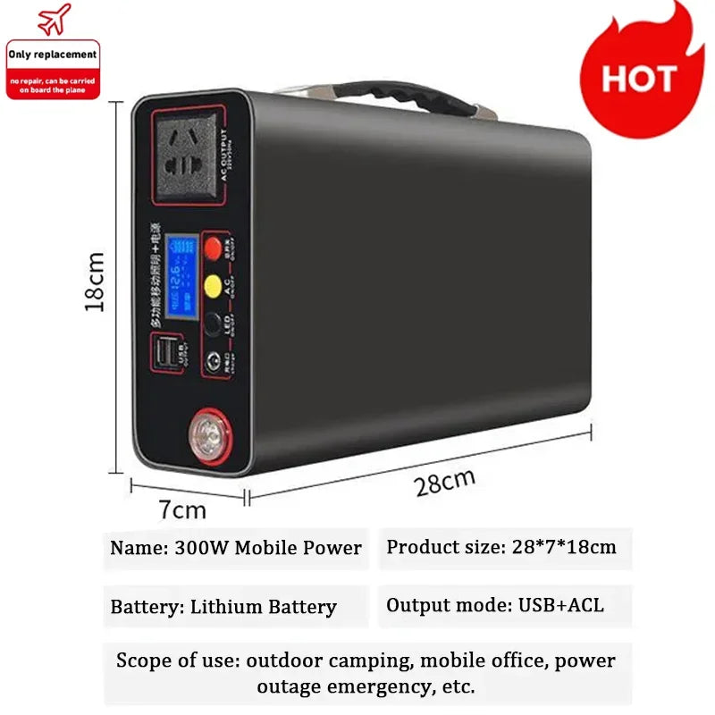 The Portable Outdoor Camping Power Bank is an essential power solution for outdoor enthusiasts and emergency situations alike. Featuring a robust 220V output and a 300W capacity, this Lifepo4 power system ensures reliable charging for various devices. The integrated LED display provides real-time monitoring of power levels, enhancing usability during camping trips or home emergencies. Compact and lightweight, this generator is designed for easy transport, making it an ideal companion for outdoor adventures or as a backup power source at home.