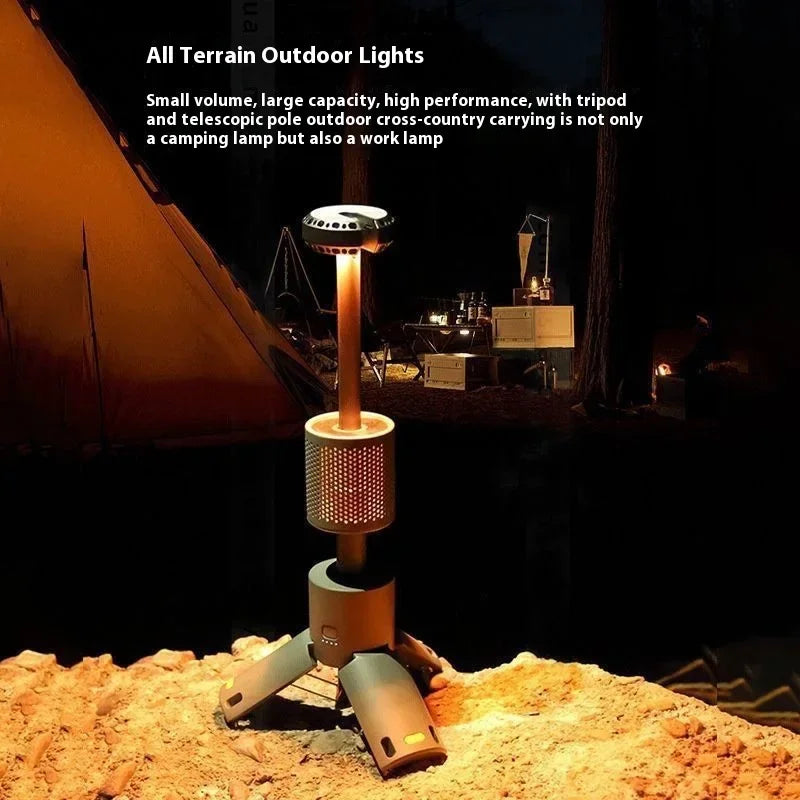The Telescopic Camping Light is a versatile and powerful portable lantern designed for outdoor enthusiasts. With a robust 10000mAh battery, it ensures extended illumination for various activities such as hiking, fishing, and camping. This LED lamp features a telescopic design for adjustable height, a magnetic base for easy attachment to metal surfaces, and a tripod for stable placement. Its ambient lighting capabilities enhance the campsite atmosphere, making it an essential companion for any adventure.